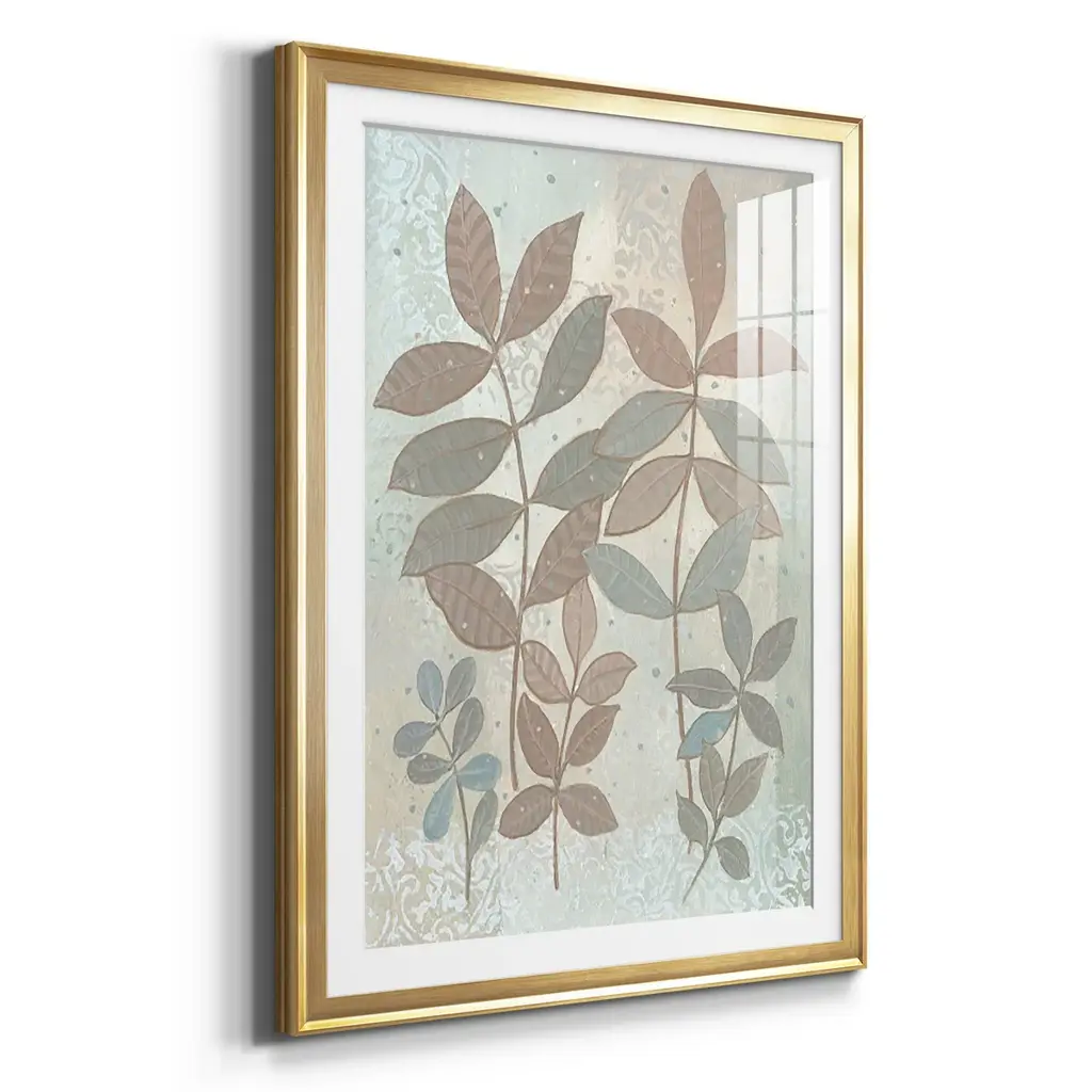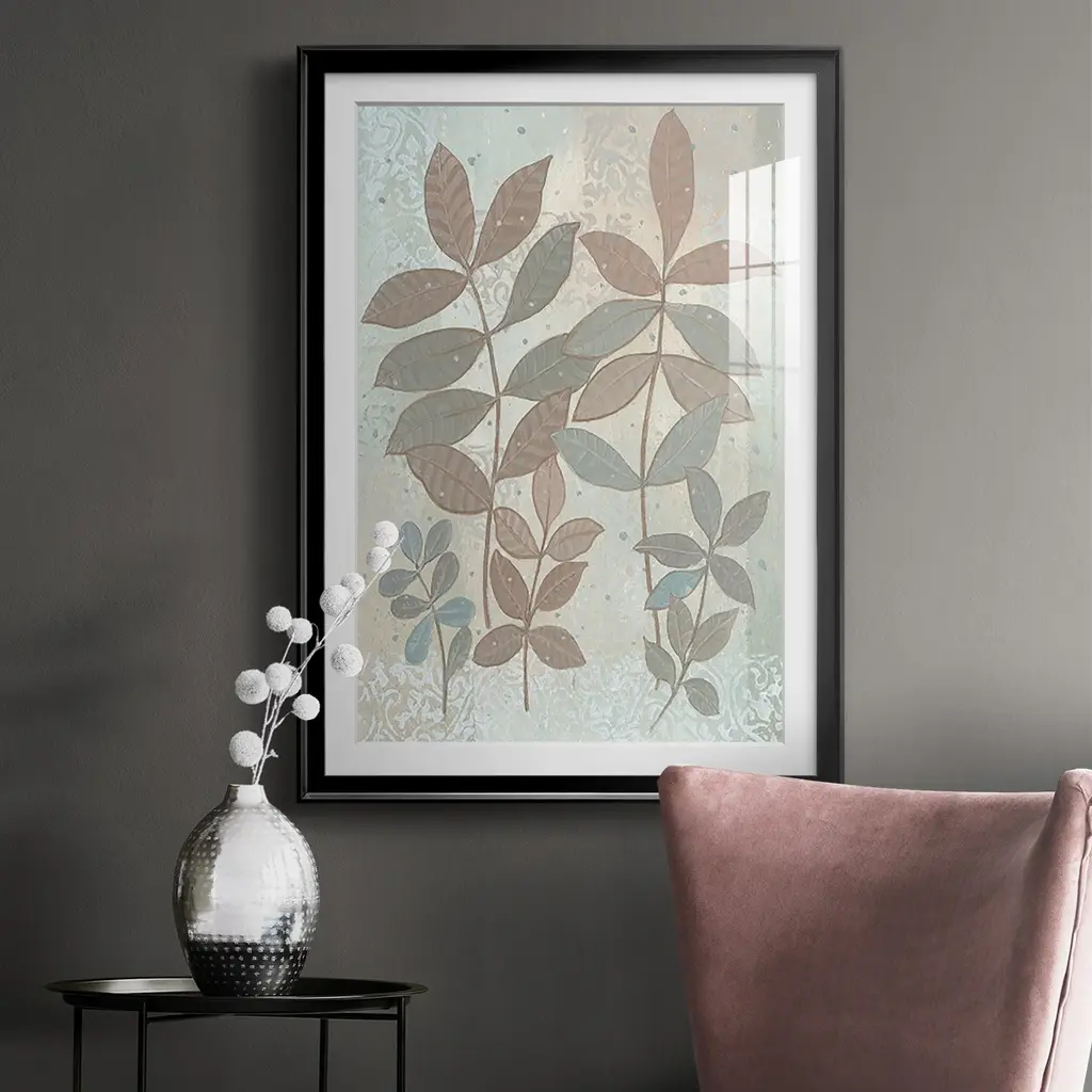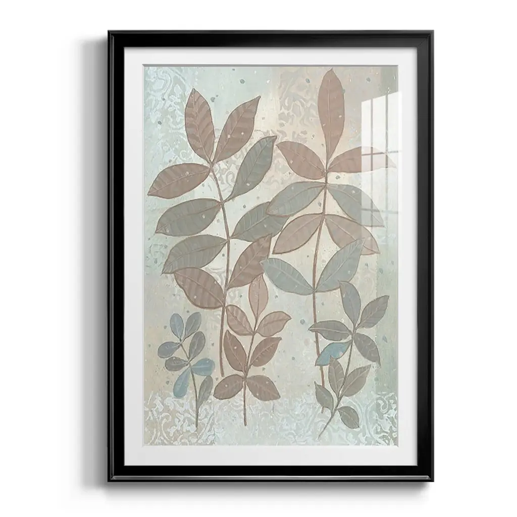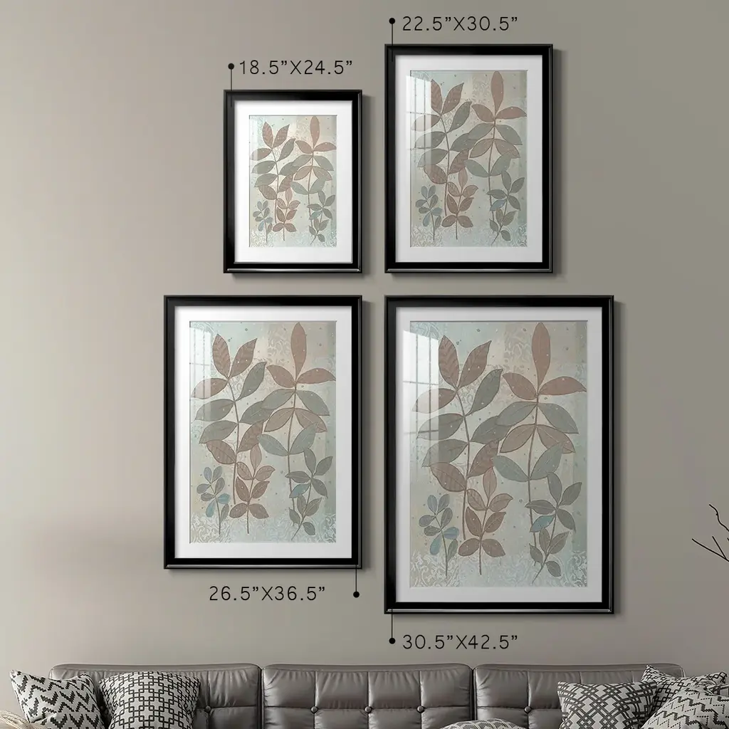 Leaf Cluster II Premium Framed Print - Ready to Hang A Premium Framed Print created to last. Framed in distressed wood and available in an array of sizes and colors Featuring a beveled a solid wood stretcher bar, each piece comes ready to hand 4 SIZES AVAILABLE 30.5''X42.5'' - Overall Size 26.5'X36.5'' - Overall Size 22.5''x30.5'' - Overall Size 18.5''x24.5'' - Overall Size Each piece is made to order. Each piece comes with hanging hardware. Made in the USA Ready to Hang Giclee Paper Print Acrylic Glass Beveled Matt Board