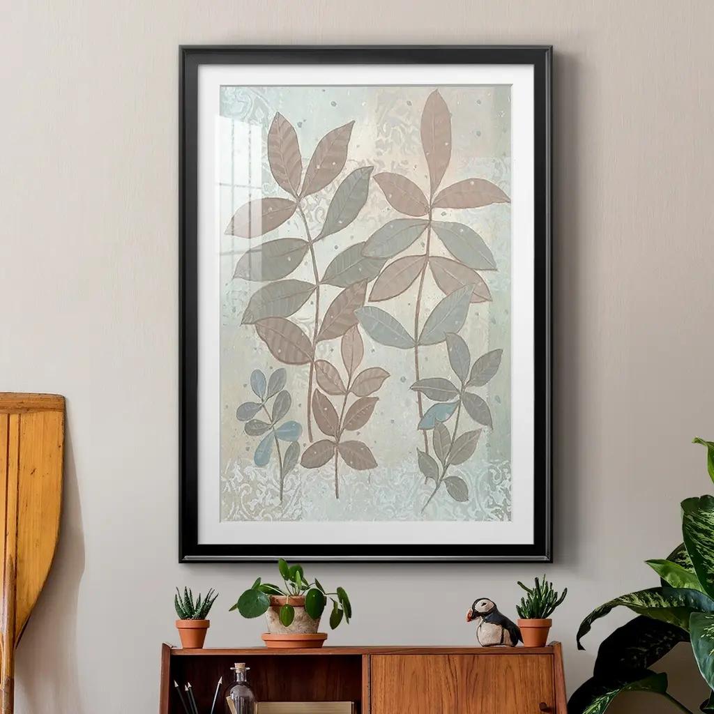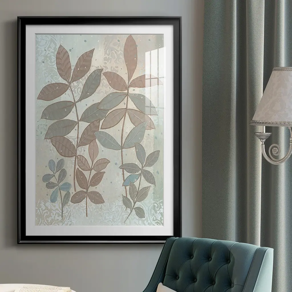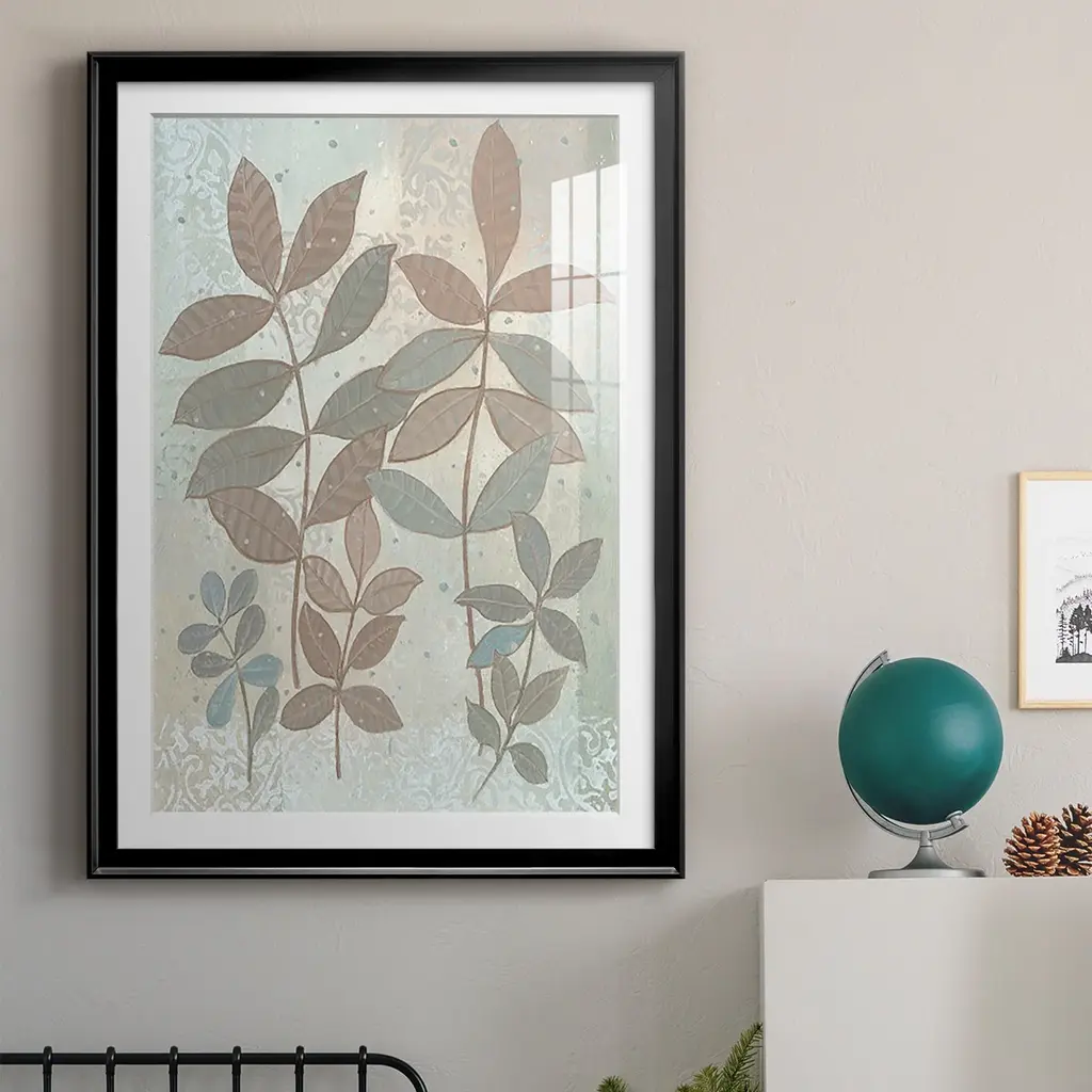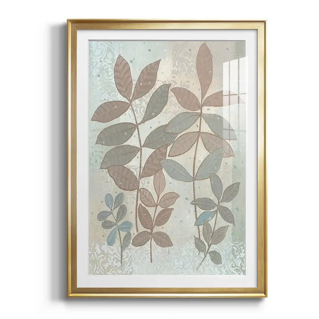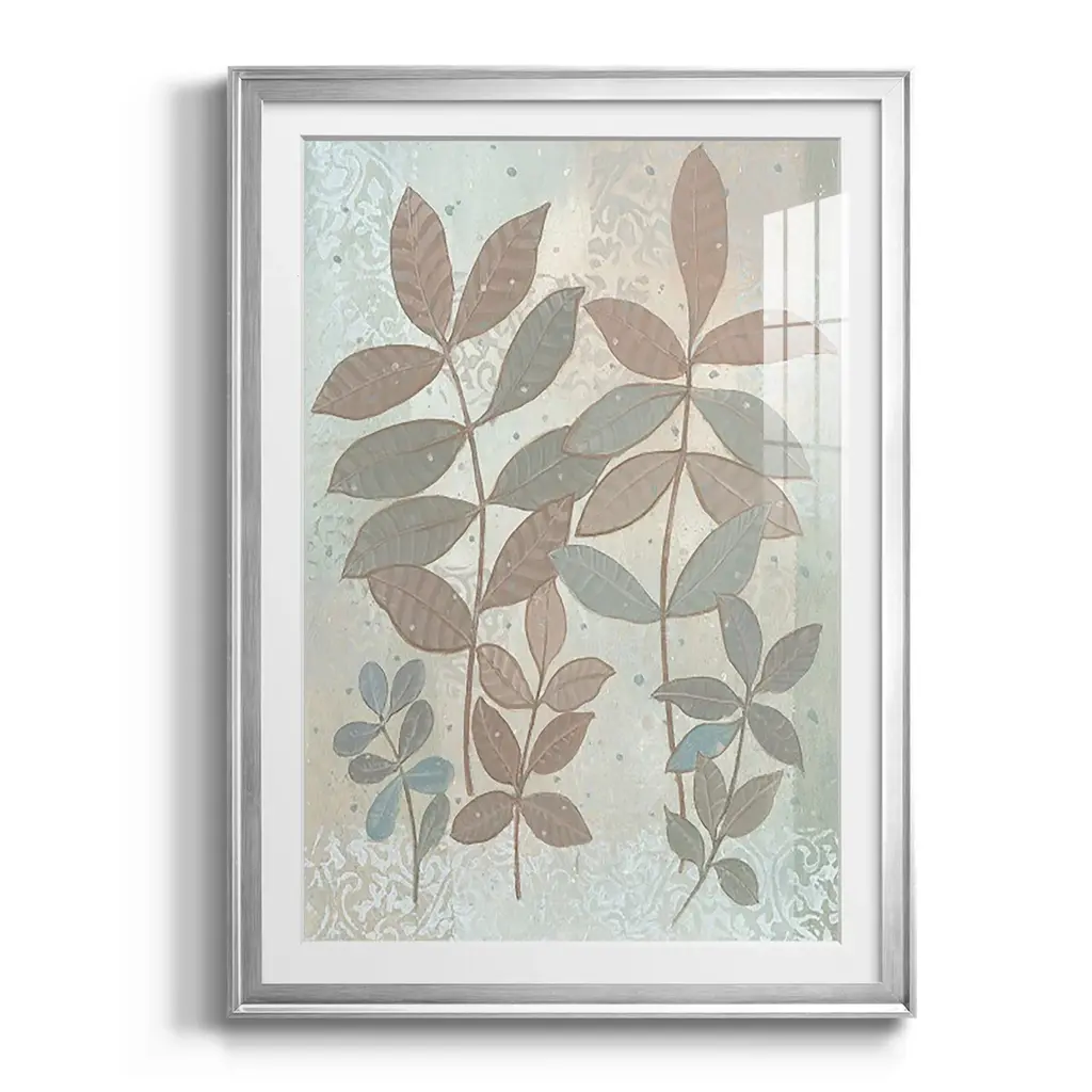 Leaf Cluster II Premium Framed Print - Ready to Hang A Premium Framed Print created to last. Framed in distressed wood and available in an array of sizes and colors Featuring a beveled a solid wood stretcher bar, each piece comes ready to hand 4 SIZES AVAILABLE 30.5''X42.5'' - Overall Size 26.5'X36.5'' - Overall Size 22.5''x30.5'' - Overall Size 18.5''x24.5'' - Overall Size Each piece is made to order. Each piece comes with hanging hardware. Made in the USA Ready to Hang Giclee Paper Print Acrylic Glass Beveled Matt Board