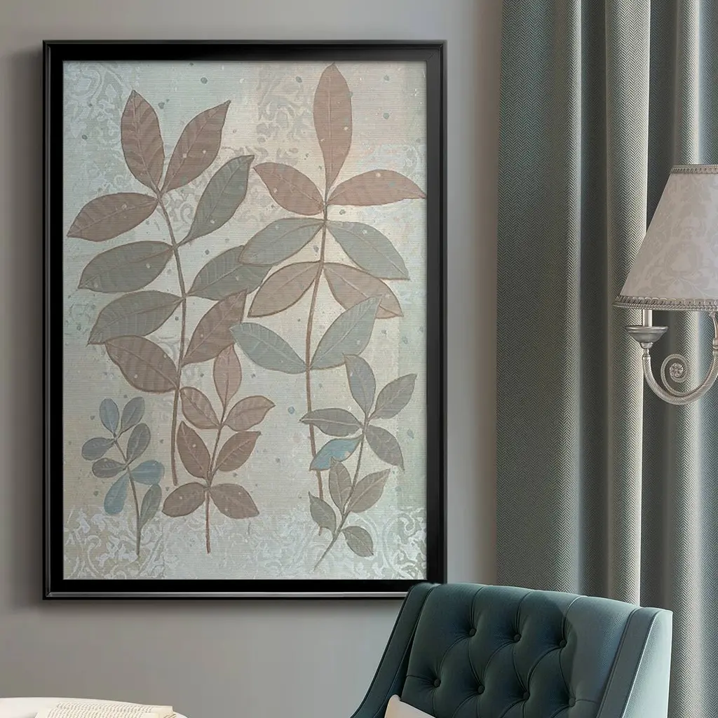Leaf Cluster II Premium Framed Print - Ready to Hang A Premium Framed Print created to last. Framed in distressed wood and available in an array of sizes and colors Featuring a beveled a solid wood stretcher bar, each piece comes ready to hand 4 SIZES AVAILABLE 30.5''X42.5'' - Overall Size 26.5'X36.5'' - Overall Size 22.5''x30.5'' - Overall Size 18.5''x24.5'' - Overall Size Each piece is made to order. Each piece comes with hanging hardware. Made in the USA Ready to Hang