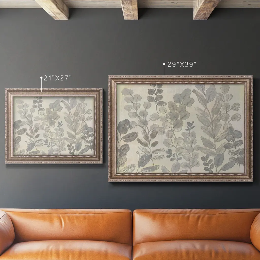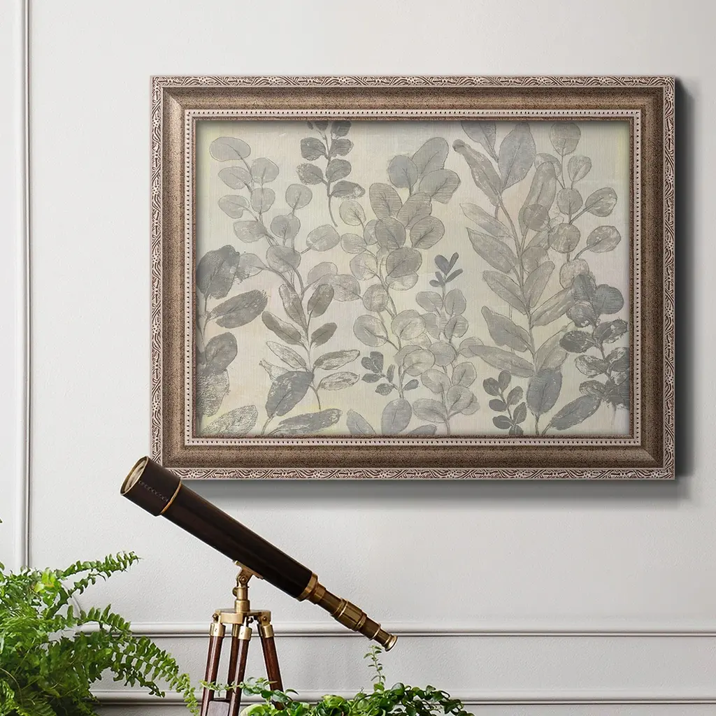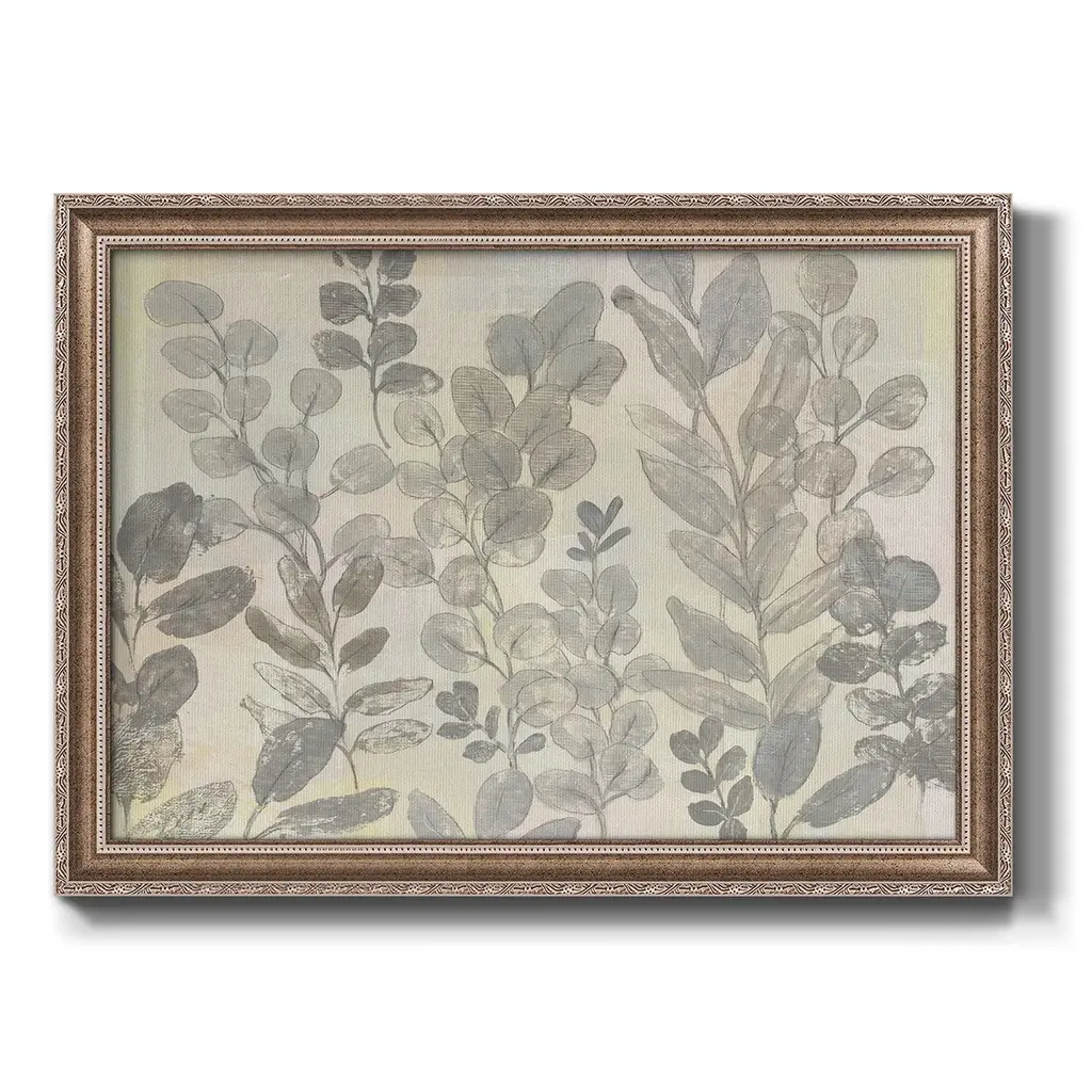 Leaf Pattern II Premium Framed Canvas- Ready to Hang A Premium Framed Canvas created to last. Framed in distressed wood and available in an array of sizes and colors Featuring a beveled a solid wood stretcher bar, each piece comes ready to hand 3 SIZES AVAILABLE 16''X20'' - Overall Size 18'X27'' - Overall Size 24''x36'' - Overall Size Each piece is made to order. Each piece comes with hanging hardware. Made in the USA Ready to Hang Giclee Paper Print Acrylic Glass Beveled Matt Board