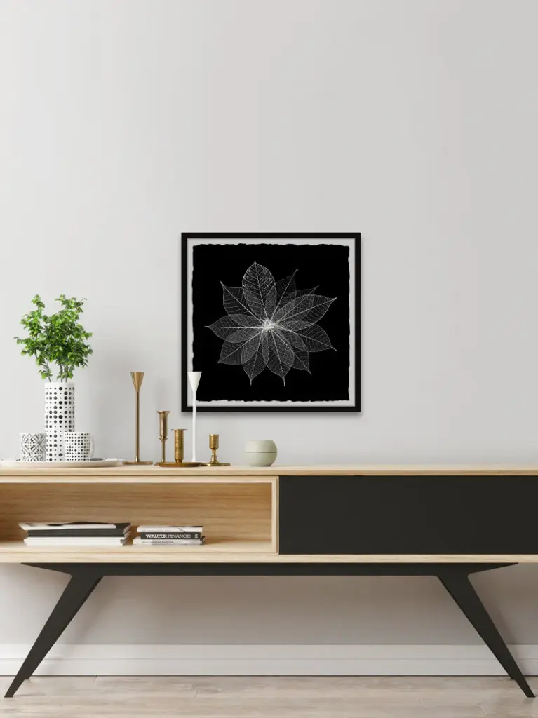 This bold photographic print features a white, detailed flower that pops in front of a black background. Proudly printed in the USA, this piece is printed on high quality archive paper and professionally hand-framed. With wall-mounting hooks included, this artful accent is ready to hang up as soon as it reaches your front door.- Top quality Giclee print on high resolution Archive Paper- Hand cut deckled edges- High quality durable non-warping frame- Finished under shatter resistant plexiglass- Arrives ready to hang- Includes a certificate of authenticity- Printed in the USA