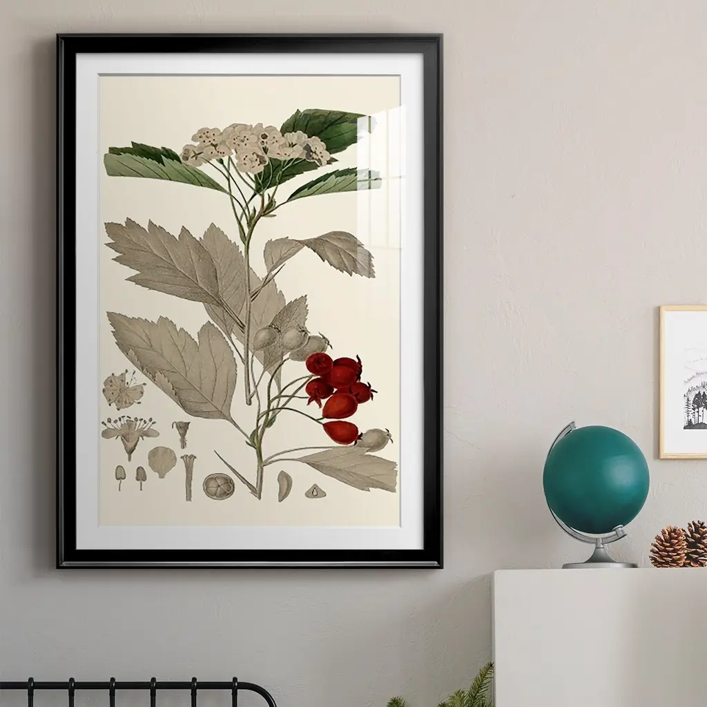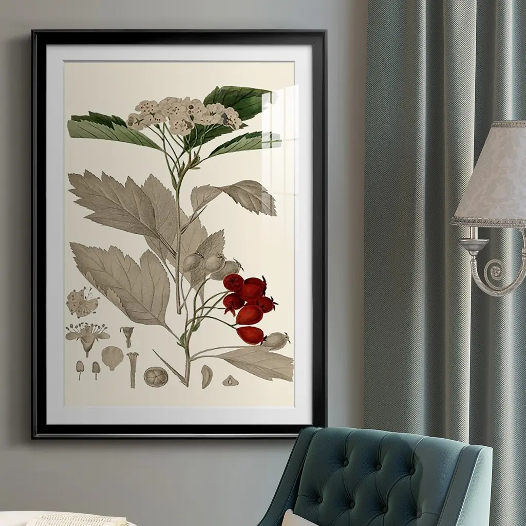Leaves & Berries I Premium Framed Print - Ready to Hang A Premium Framed Print created to last. Framed in distressed wood and available in an array of sizes and colors Featuring a beveled a solid wood stretcher bar, each piece comes ready to hand 4 SIZES AVAILABLE 30.5''X42.5'' - Overall Size 26.5'X36.5'' - Overall Size 22.5''x30.5'' - Overall Size 18.5''x24.5'' - Overall Size Each piece is made to order. Each piece comes with hanging hardware. Made in the USA Ready to Hang Giclee Paper Print Acrylic Glass Beveled Matt Board