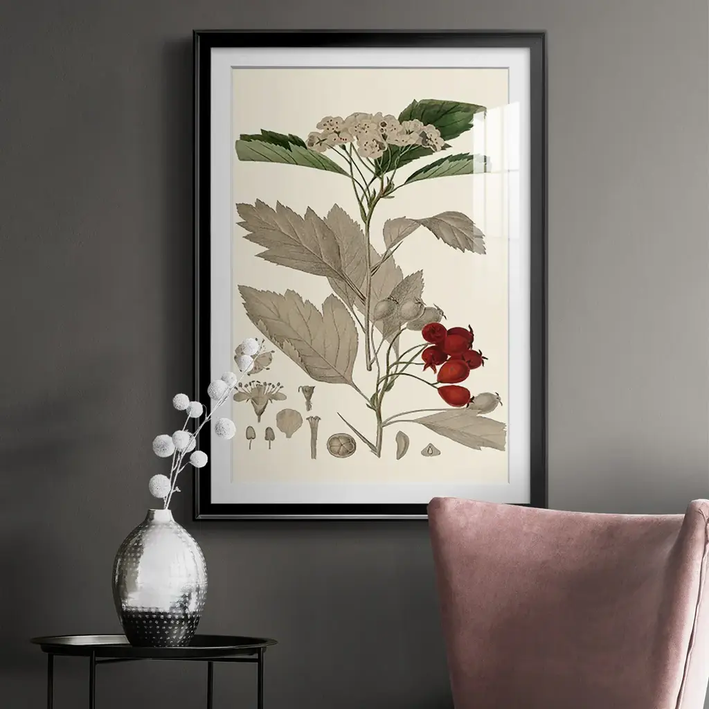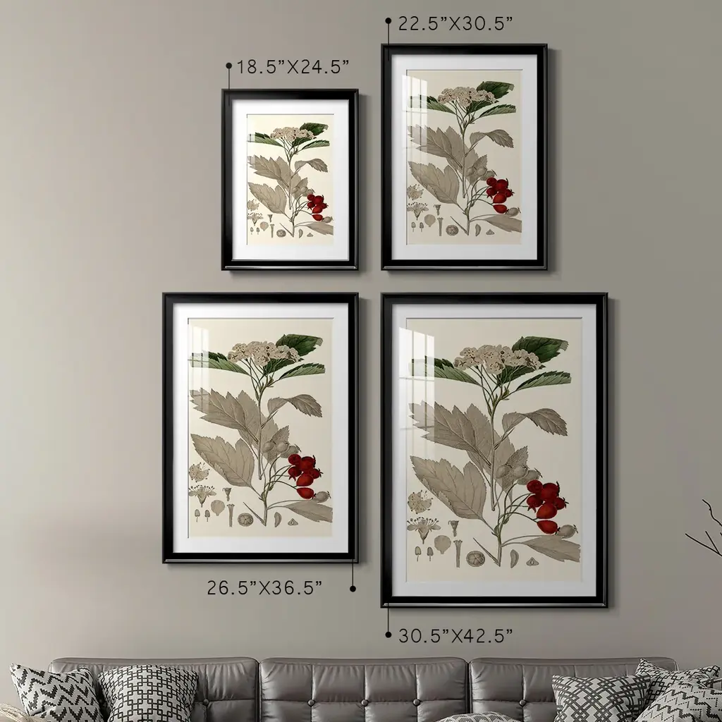 Leaves & Berries I Premium Framed Print - Ready to Hang A Premium Framed Print created to last. Framed in distressed wood and available in an array of sizes and colors Featuring a beveled a solid wood stretcher bar, each piece comes ready to hand 4 SIZES AVAILABLE 30.5''X42.5'' - Overall Size 26.5'X36.5'' - Overall Size 22.5''x30.5'' - Overall Size 18.5''x24.5'' - Overall Size Each piece is made to order. Each piece comes with hanging hardware. Made in the USA Ready to Hang Giclee Paper Print Acrylic Glass Beveled Matt Board