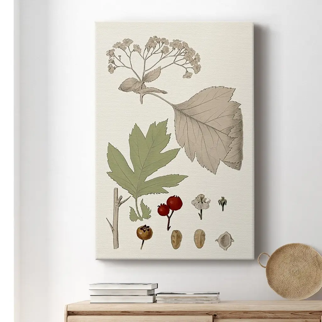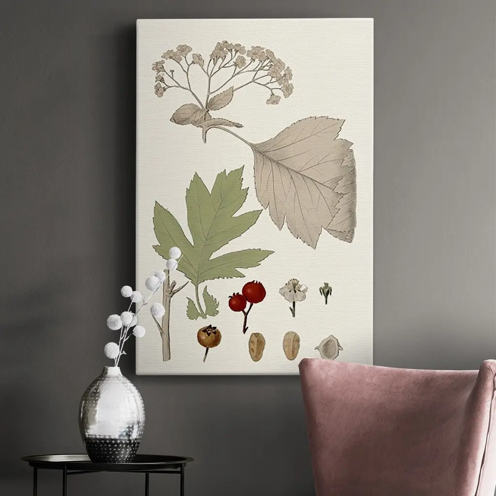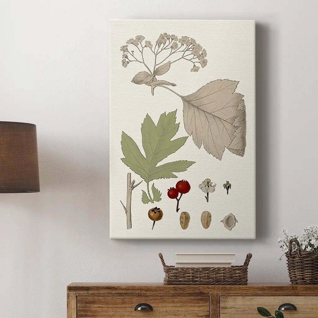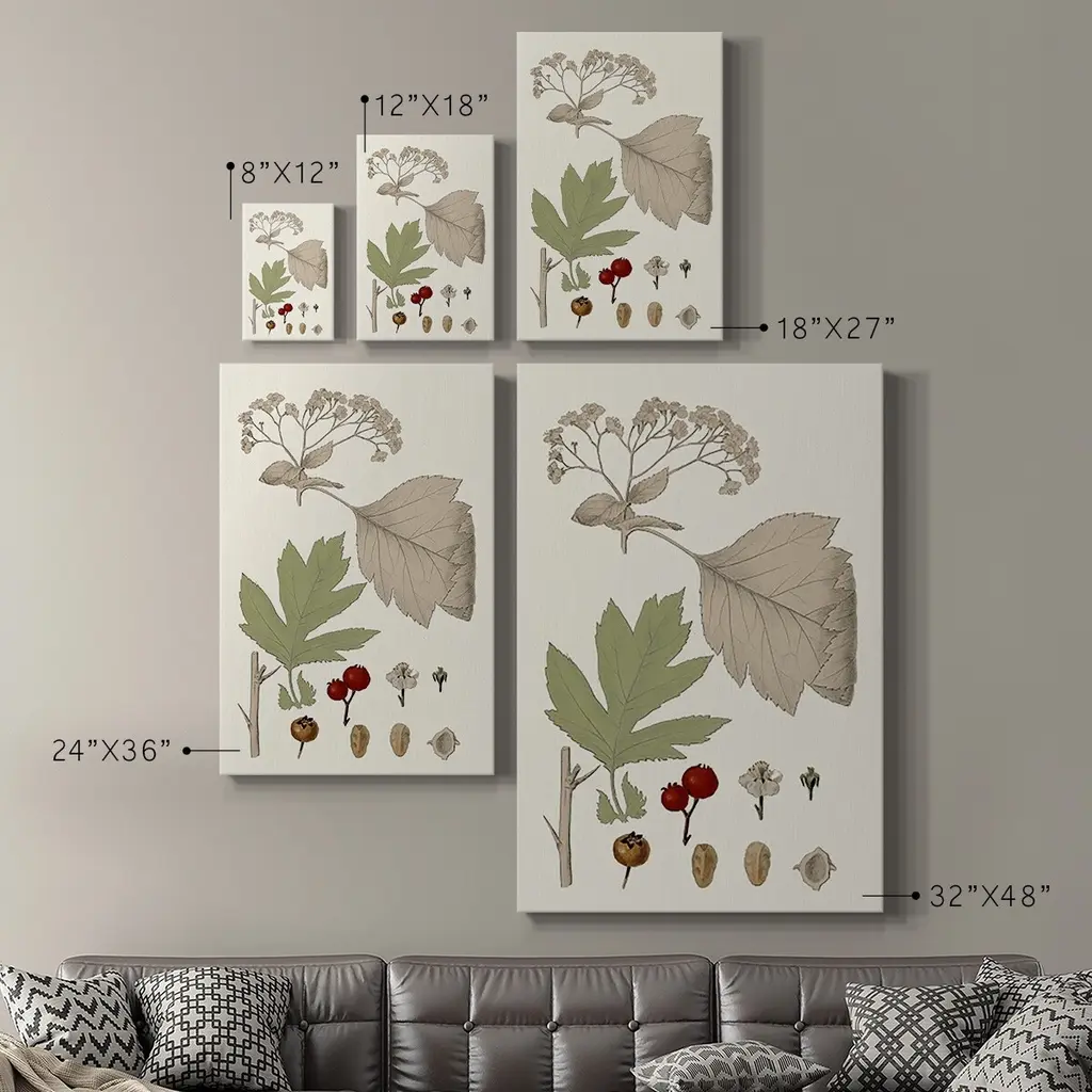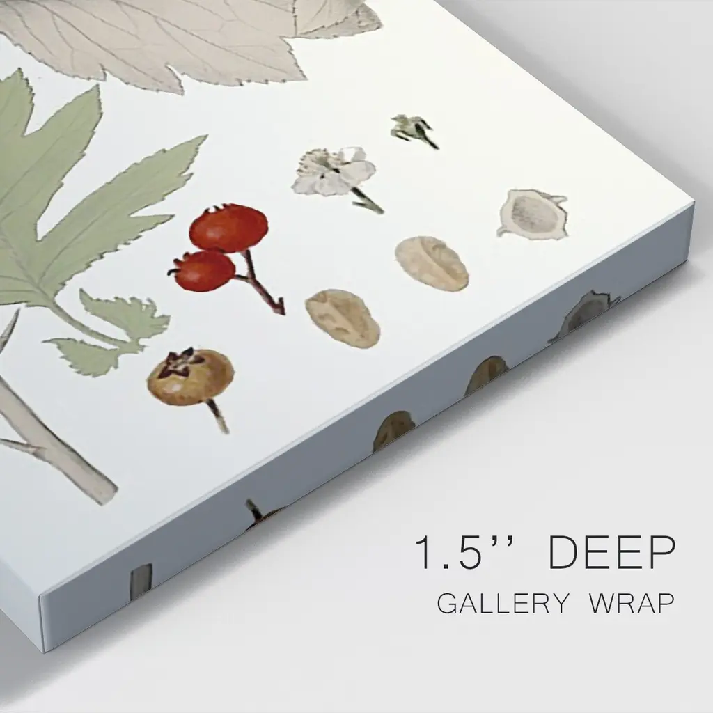 Leaves & Berries II Premium Gallery Wrapped Canvas - Ready to Hang A premium hand stretched gallery wrapped canvas print created to last. Featuring a beveled a solid wood stretcher bar, each piece comes ready to hand 6 SIZES AVAILABLE 8''X12'' - Overall Size 12''X18'' - Overall Size 18''X27'' - Overall Size 24''x36'' - Overall Size 32''x48'' - Overall Size 40''x60'' - Overall Size Each piece is made to order. Built to Last Each piece comes ready to hang Solid wood stretcher Fade and Water resistant Made domestically