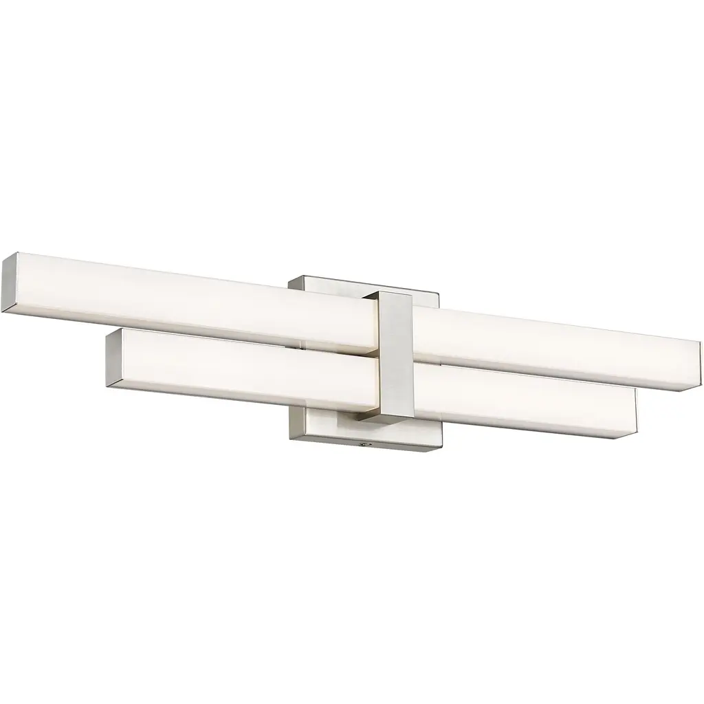 This LED, 26 inch linear wall fixture is a versatile piece. The Brushed Nickel finish and a white acrylic diffuser create a crisp look and bright, clean ambience. Horizontal or vertical mounting options add to the versatility of this fixture.Voltage 120-277Number of Bulbs 1Wattage 19WBulbs are included