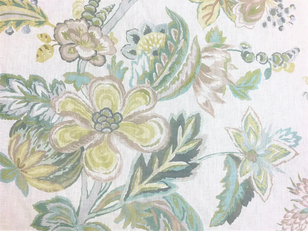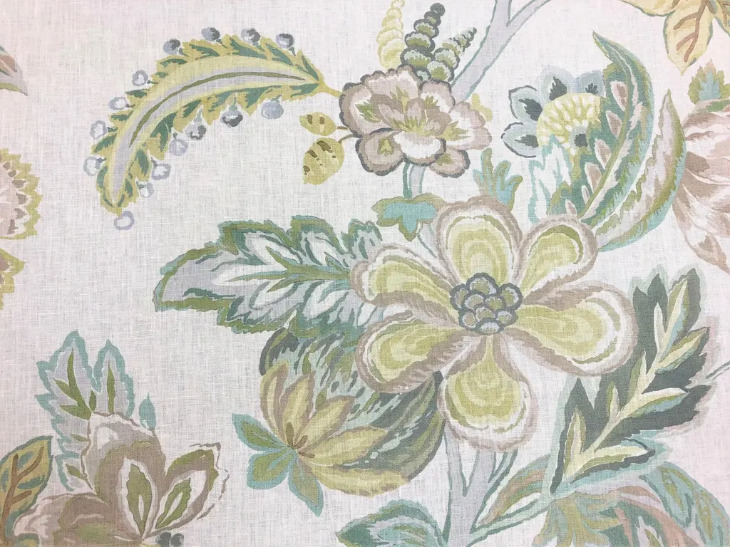 Lee Jofa Augustine Print Celadon Green Ivory Seafoam Taupe Floral Linen Fabric