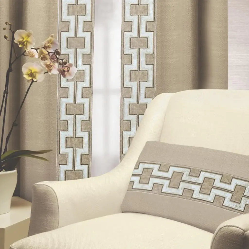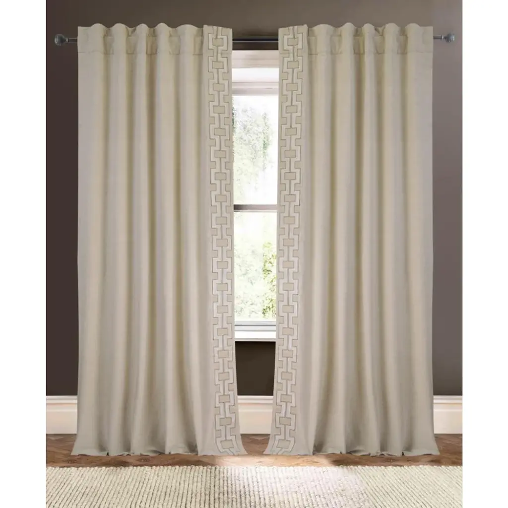 Natural + ivory beautifully embroider the trim of these drapes. From bedroom to living spaces, these panels deliver beautiful framing or coverage for windows.