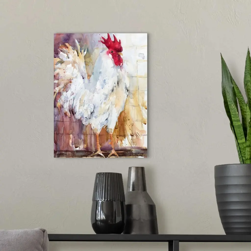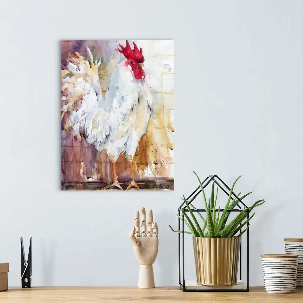 Contemporary watercolor painting of a rooster.