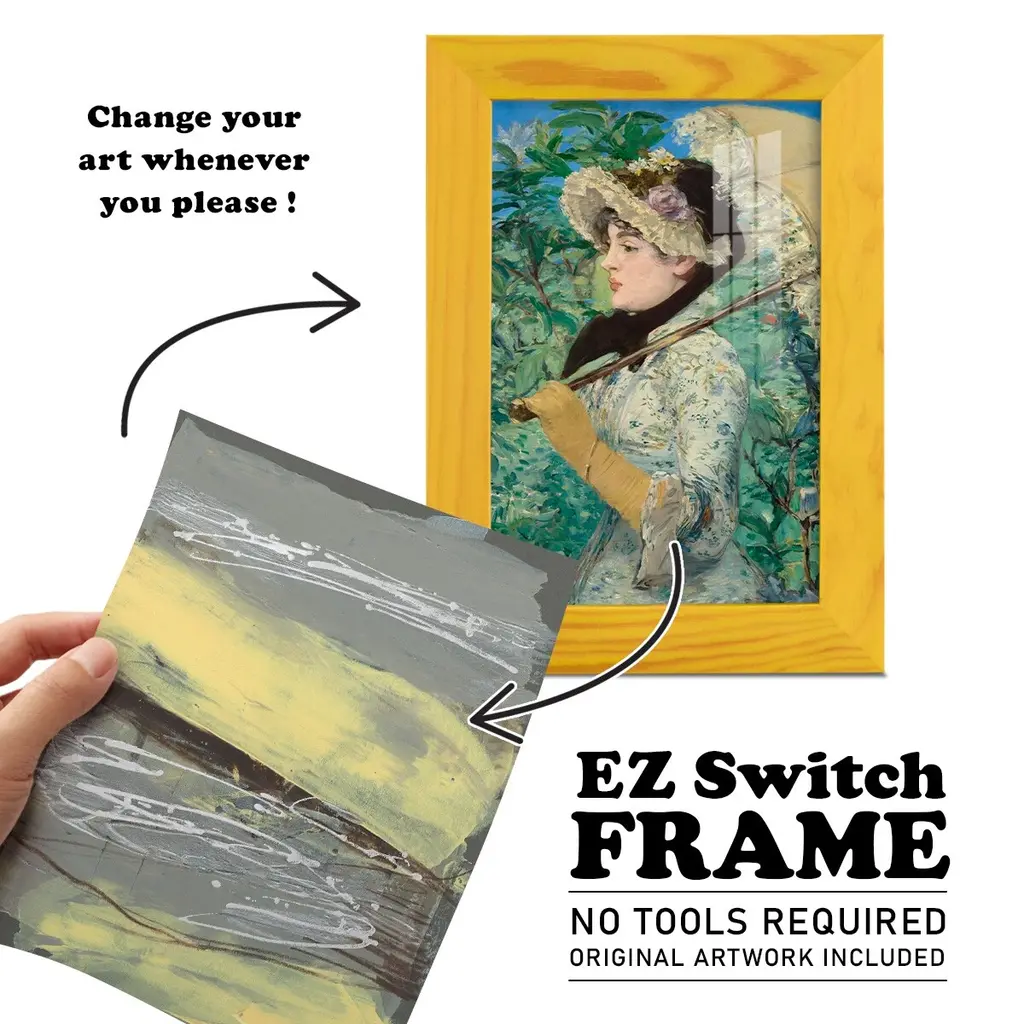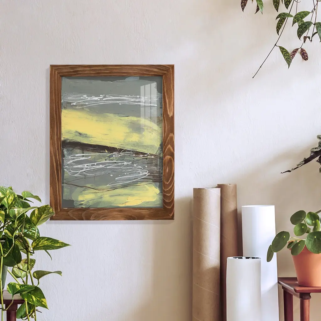 Lemon & Silver Swipe II -EZ SWITCH Framed Print w/glass-Cherry Red A delightful, framed print. Featuring a solid wood frame with real wood glass. This premium print is giclee quality. In addition, every frame features a removable back and table top stand. This allows you to change your art in the future or to just stand the art on a table for a new look. We are sure you'll enjoy our new series of EZ SWITCH Framed Art. Solid Wood Frame Real Glass Removable / Replaceable Art Built in Tabletop Stand Sizes range from 4x6 up to 12x15 - buy just one or pair them up as sets as you see fit.