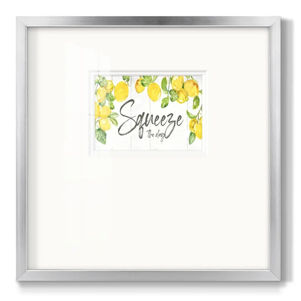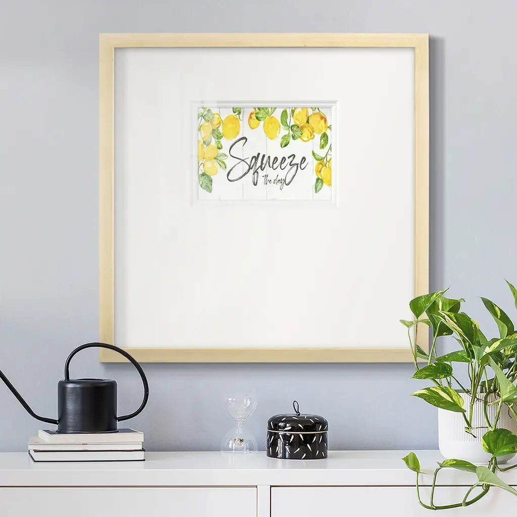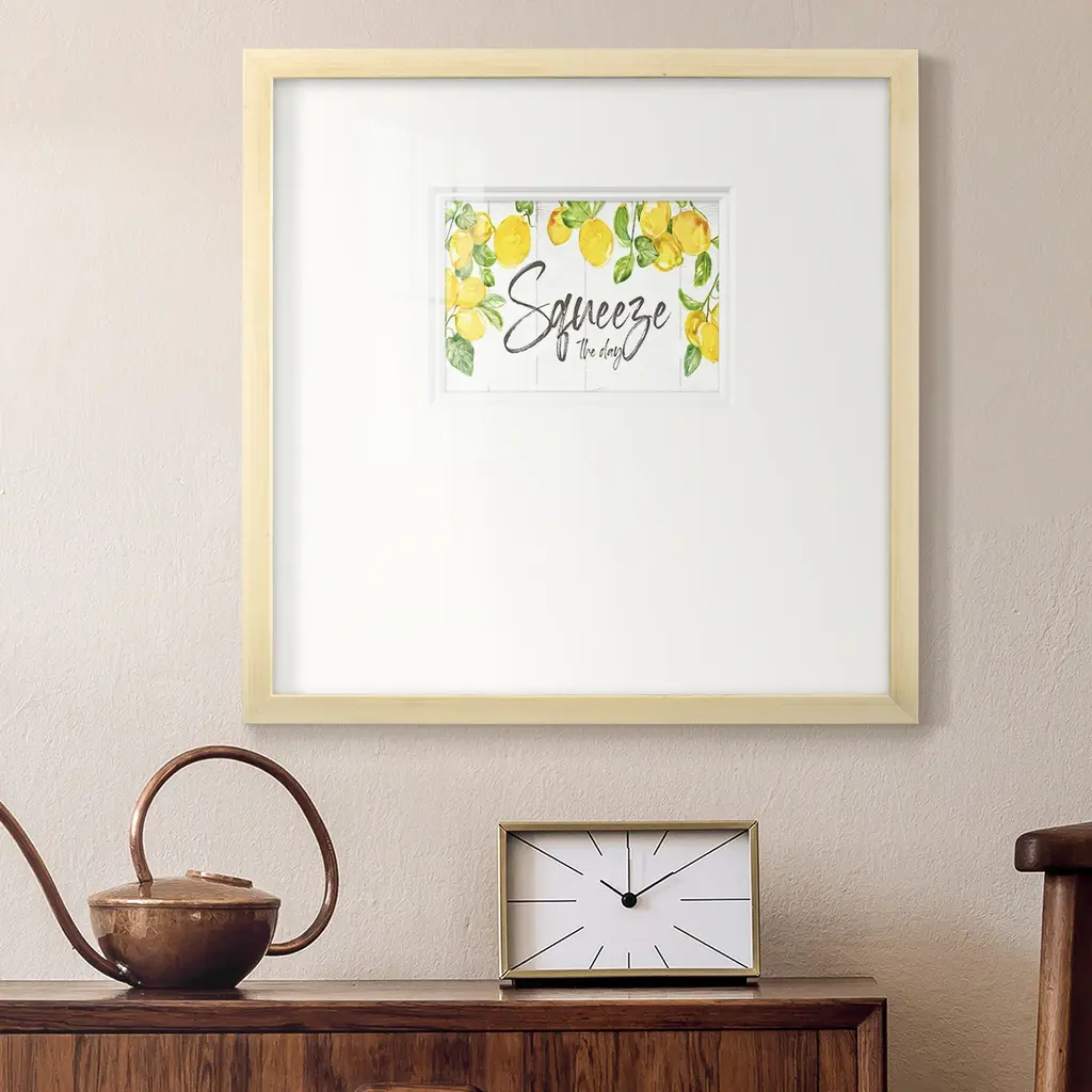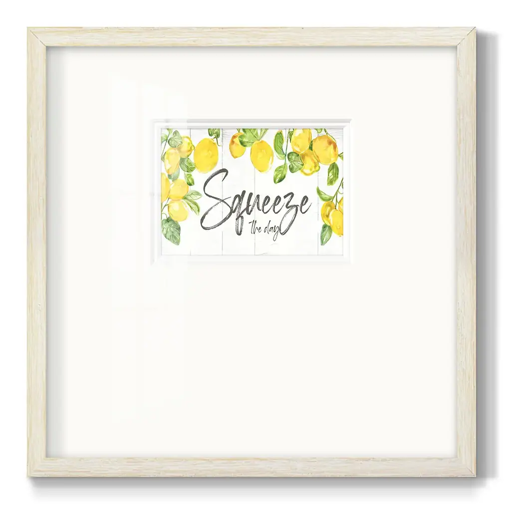 Lemon SqueezePremium Framed Print A framed cold pressed paper print featuring superior double matting and quality frame. 2 SIZES AVAILABLE 16''X16''' - Overall Size 20''X20''' - Overall Size Each piece is made to order. Each piece comes with hanging hardware. Made in the USA Ready to Hang Giclee Paper Print Plexiglass Beveled Matt Board Double Matte Board