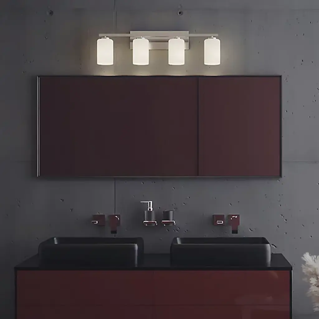 Our Leo Vanity Light by AFX Lighting is a standout fixture in any modern or contemporary style bathroom. With its sturdy steel construction and elegant glass shades, it offers a perfect blend of durability and style. The Leo Vanity can handle damp conditions, making it ideal for bathroom environments. Its cylinder-form design adds a unique aesthetic, fitting in with any design ethos. Certified by cETLus, we guarantee its quality and performance in your home. Recommended for use in a bathroom, this vanity illuminates your space with a stylish glow.