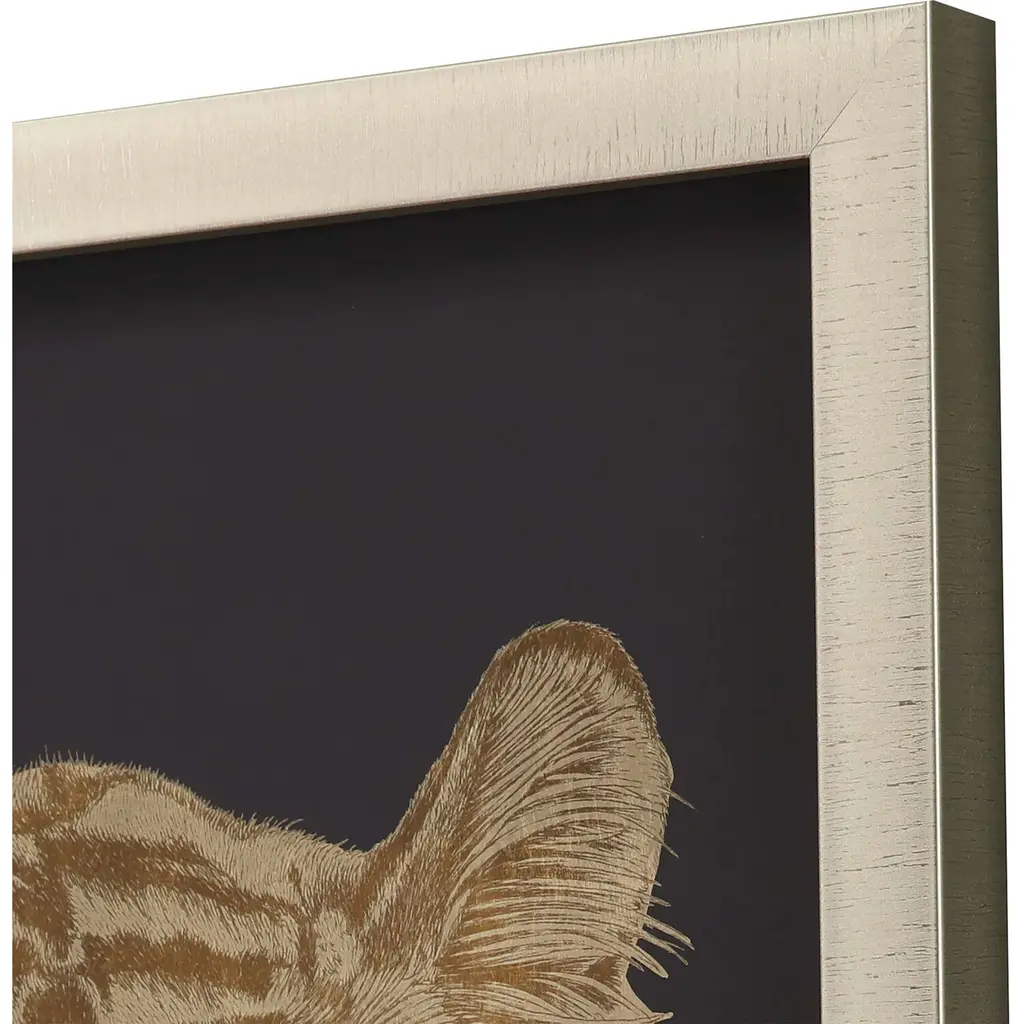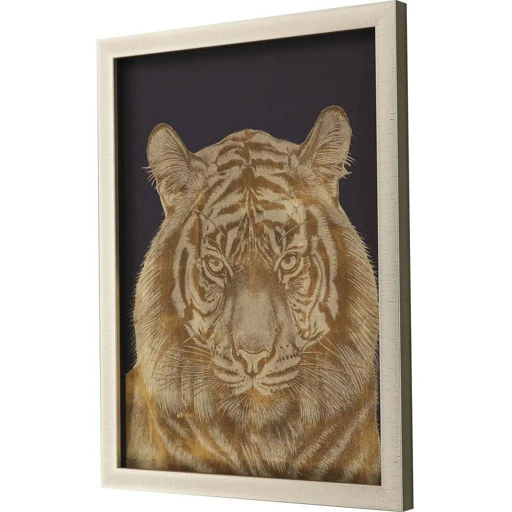 A dramatic tiger is framed in a champagne gold block contemporary moulding.