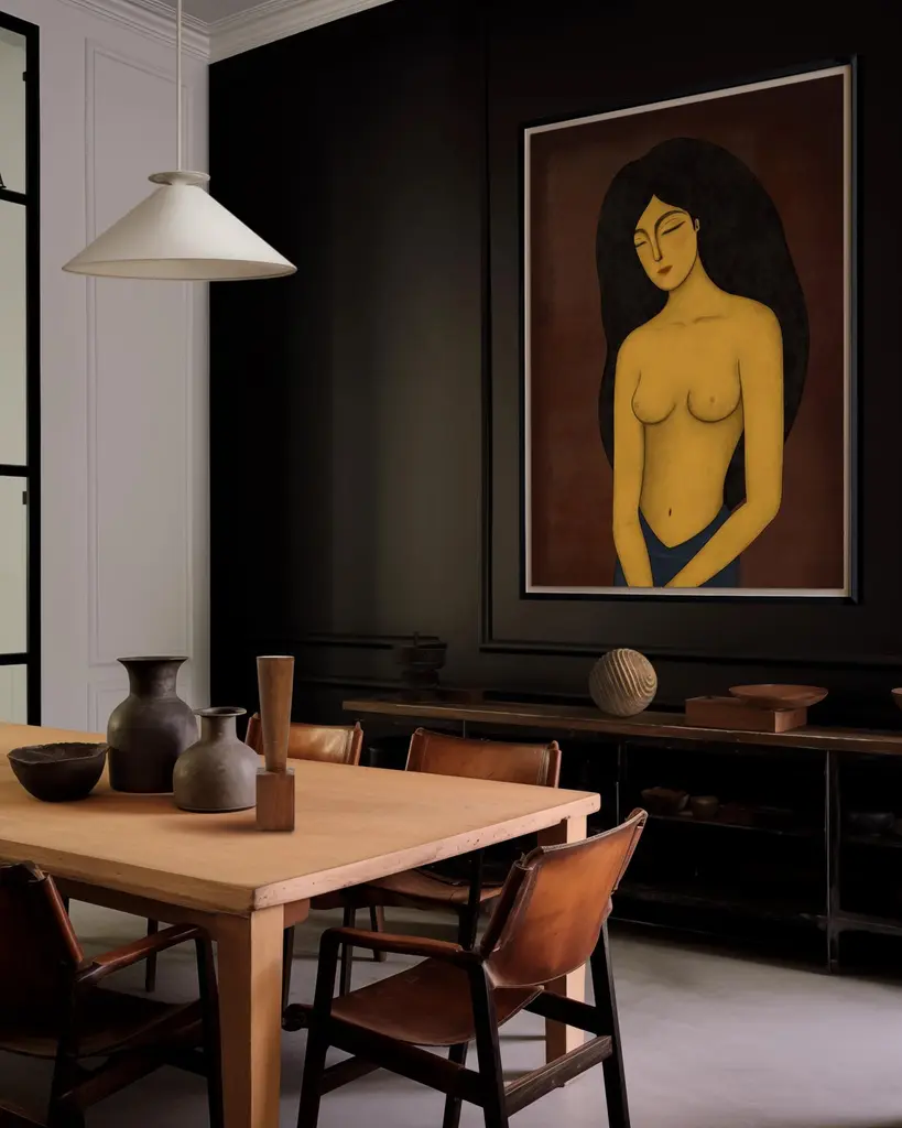 The highly anticipated final installment of the "Les Femmes" series, "Les Femmes Trois," is now available. This exquisite limited edition fine art print features a deep and rich yet neutral color palette, perfectly capturing the essence of feminine strength and grace through bold, expressive lines. The poised and powerful pose of the subject highlights the unique beauty and complexity of womanhood. As a true statement piece, "Les Femmes Trois" can stand alone or create a dramatic impact when paired with the other Les Femmes prints as a diptych or triptych. This captivating artwork is sure to become a focal point in any space, making it a must-have for art collectors and enthusiasts alike.Each limited edition piece has a certificate of authenticity and is signed and numbered. Editions are limited to 20 of the large sizes and 50 of the medium and small sized prints in this series.Available in 2 sizes, this listing is for the LARGE SIZE.Large: 42" x 56"Medium: 30" x 40"Item will ship unframed rolled in a tube. Please reach out to us if you are located in the NYC area and interested in having it framed prior to delivery.