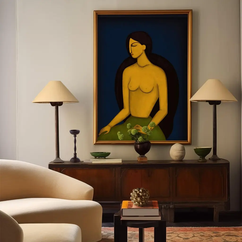 "Les Femmes Un" is a gorgeous limited edition fine art print that exemplifies the essence of modernist portraiture. Capturing the allure and sophistication of a seated woman, the artwork daws in viewers with its delicate balance of form and emotion. The artist, Christiane Lemieux, skillfully employs bold, yet subtle strokes to render the subject's features, evoking a sense of mystery and introspection. With its striking composition and exquisite attention to color and form, "Les Femmes Un" stands as a testament to the timeless beauty of feminine grace, offering viewers a window into a world of introspection and mystery. Each limited edition piece has a certificate of authenticity and is signed and numbered. Editions are limited to 20 of the large sizes and 50 of the medium sized prints in this series.Available in 2 sizes, this listing is for the MEDIUM SIZE.Medium: 30" x 40"Large: 42" x 56"Item will ship unframed rolled in a tube. Please reach out to us if you are located in the NYC area and interested in having it framed prior to delivery.