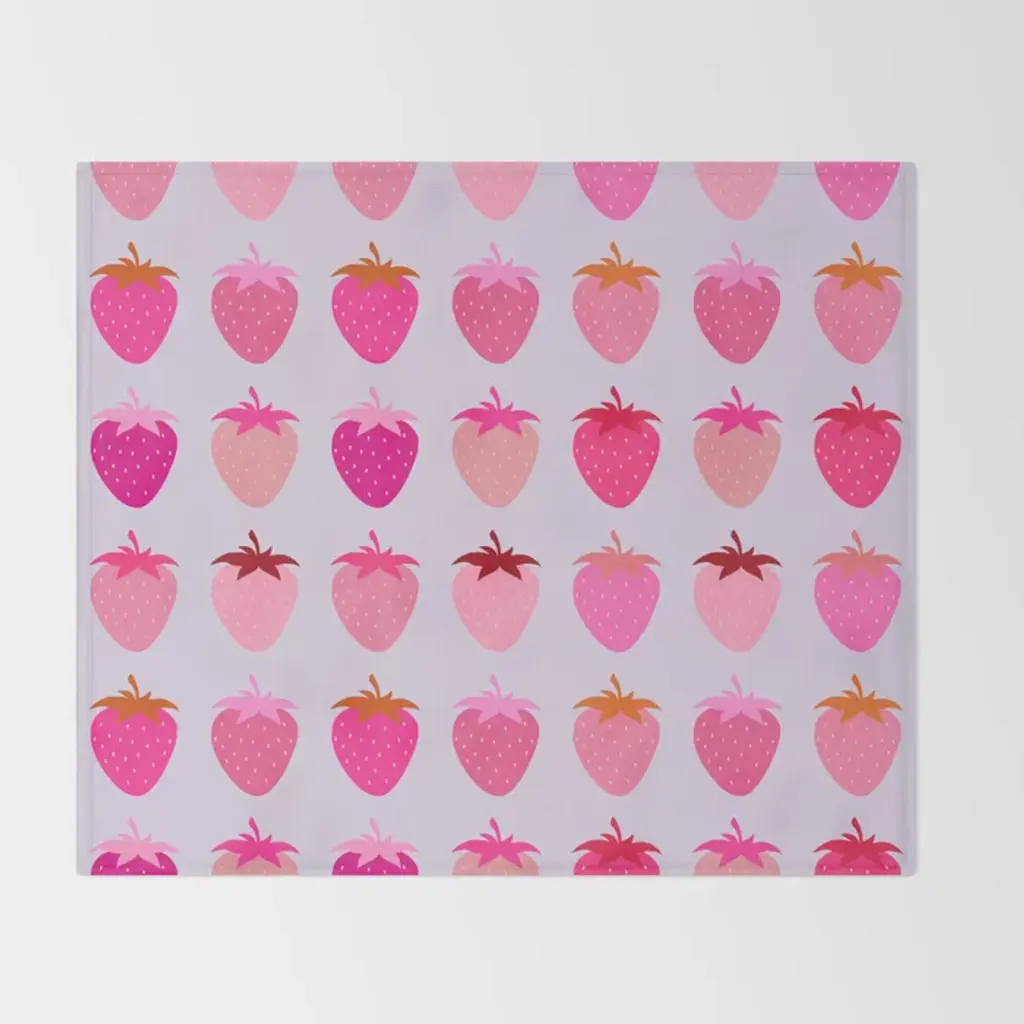 Les Fraises | 03 - Abstract Retro Fruit, Pink And Purple Print Preppy Strawberries Art Print