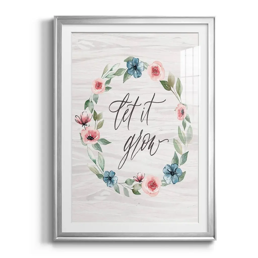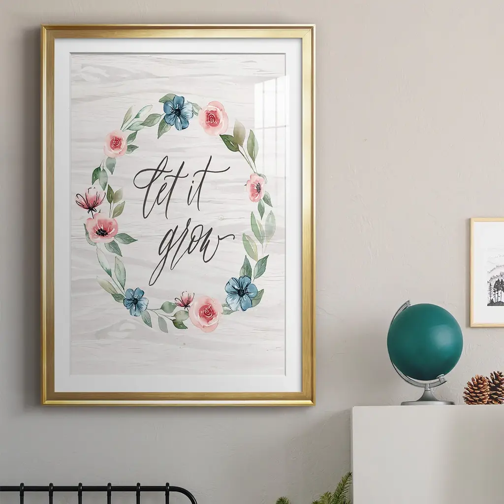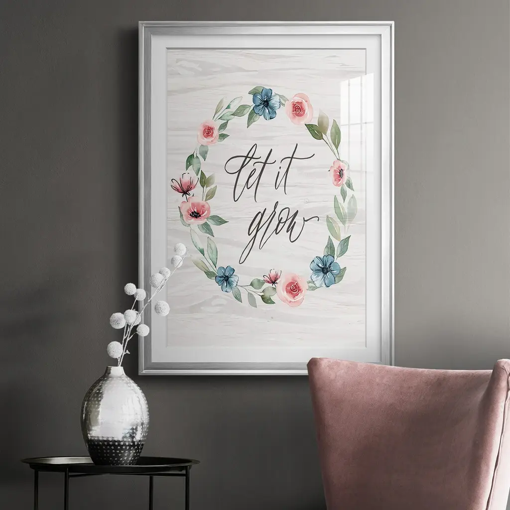 Let It Grow Premium Framed Print - Ready to Hang A Premium Framed Print created to last. Framed in distressed wood and available in an array of sizes and colors Featuring a beveled a solid wood stretcher bar, each piece comes ready to hand 4 SIZES AVAILABLE 30.5''X42.5'' - Overall Size 26.5'X36.5'' - Overall Size 22.5''x30.5'' - Overall Size 18.5''x24.5'' - Overall Size Each piece is made to order. Each piece comes with hanging hardware. Made in the USA Ready to Hang Giclee Paper Print Acrylic Glass Beveled Matt Board