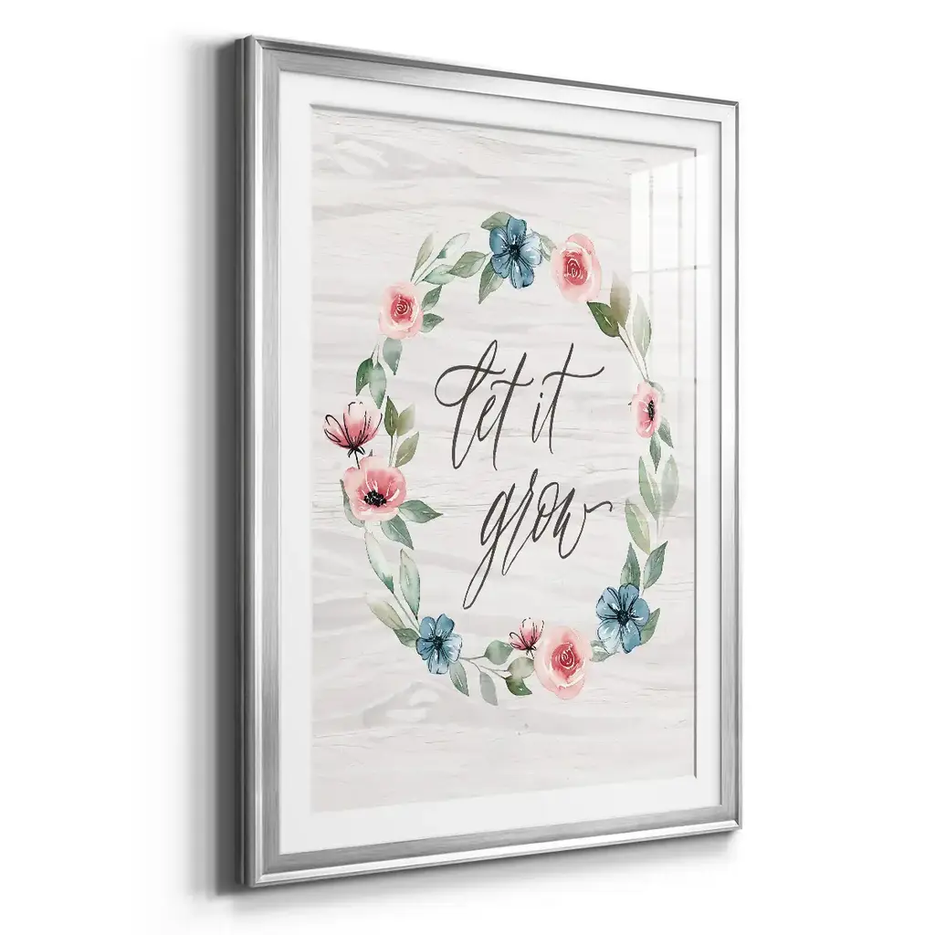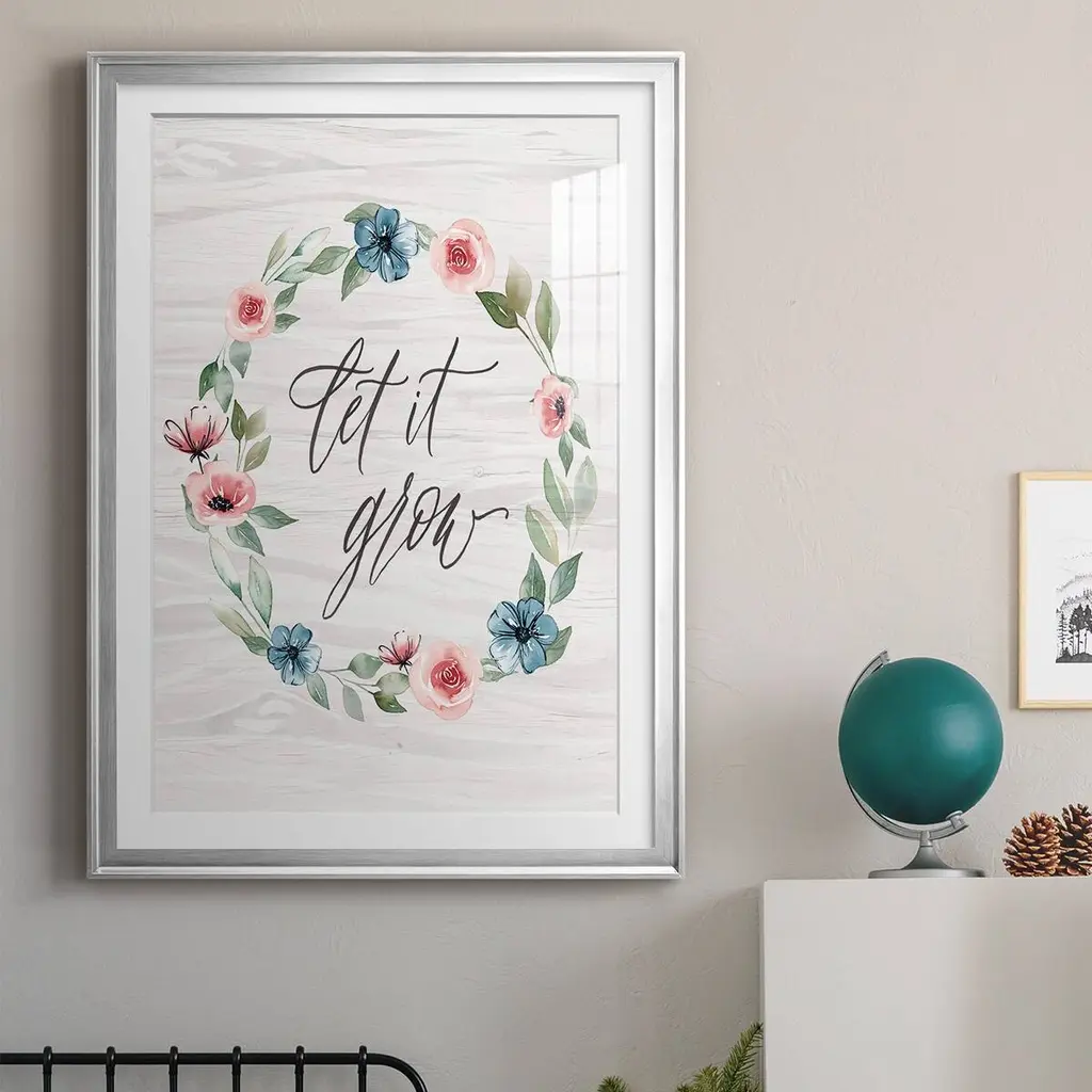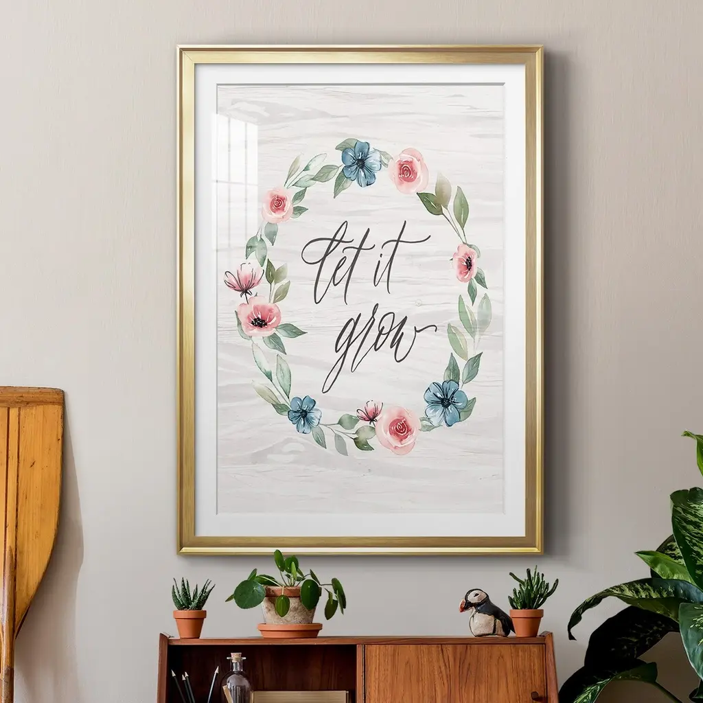 Let It Grow Premium Framed Print - Ready to Hang A Premium Framed Print created to last. Framed in distressed wood and available in an array of sizes and colors Featuring a beveled a solid wood stretcher bar, each piece comes ready to hand 4 SIZES AVAILABLE 30.5''X42.5'' - Overall Size 26.5'X36.5'' - Overall Size 22.5''x30.5'' - Overall Size 18.5''x24.5'' - Overall Size Each piece is made to order. Each piece comes with hanging hardware. Made in the USA Ready to Hang Giclee Paper Print Acrylic Glass Beveled Matt Board