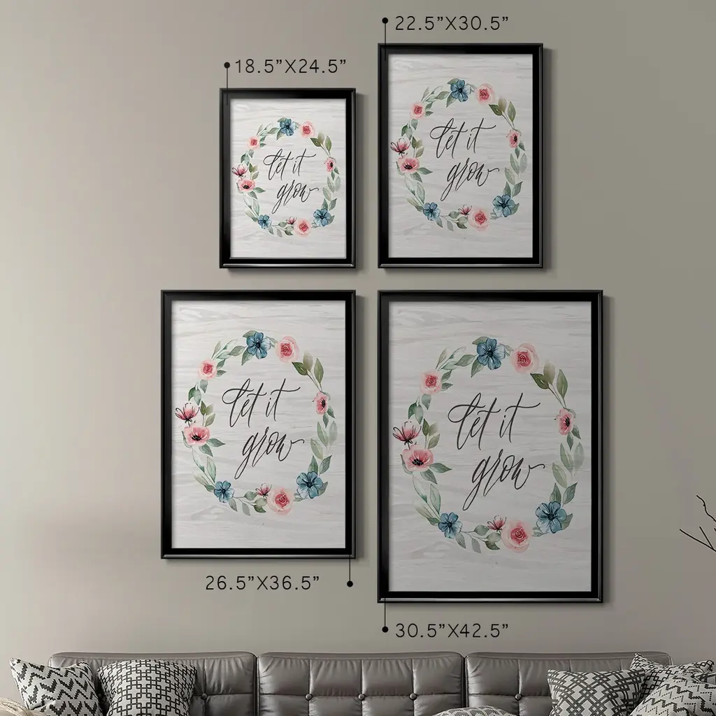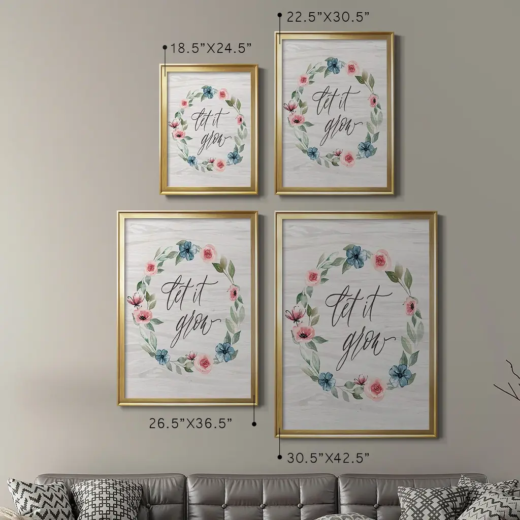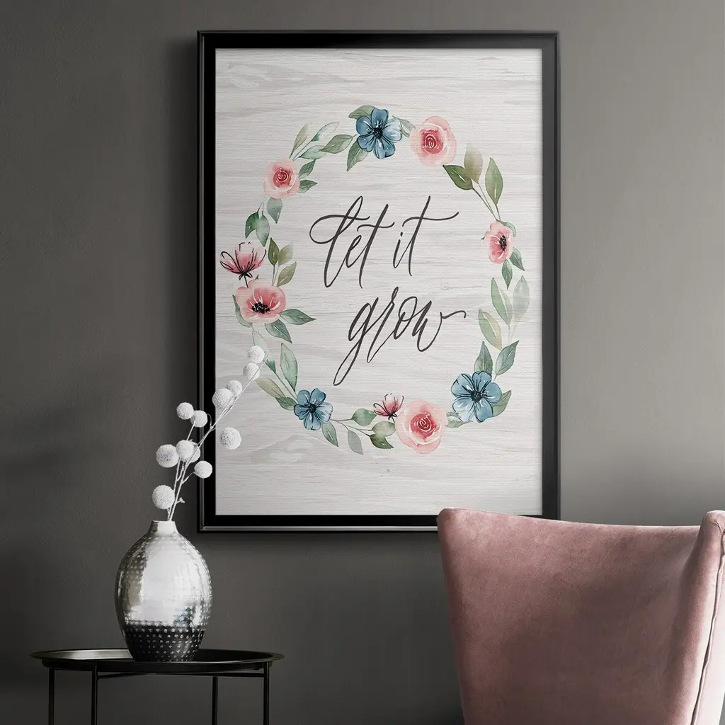 Let It Grow Premium Framed Print - Ready to Hang A Premium Framed Print created to last. Framed in distressed wood and available in an array of sizes and colors Featuring a beveled a solid wood stretcher bar, each piece comes ready to hand 4 SIZES AVAILABLE 30.5''X42.5'' - Overall Size 26.5'X36.5'' - Overall Size 22.5''x30.5'' - Overall Size 18.5''x24.5'' - Overall Size Each piece is made to order. Each piece comes with hanging hardware. Made in the USA Ready to Hang