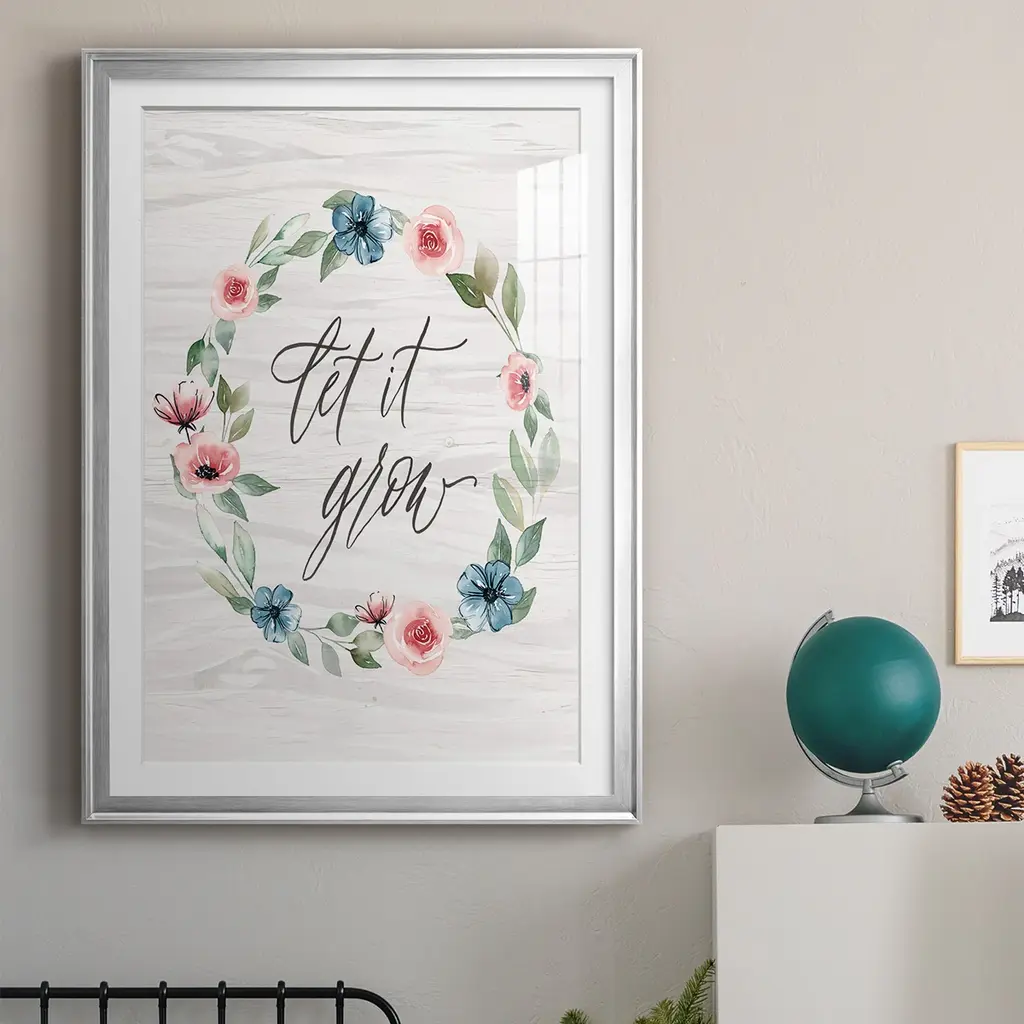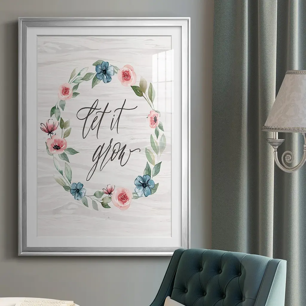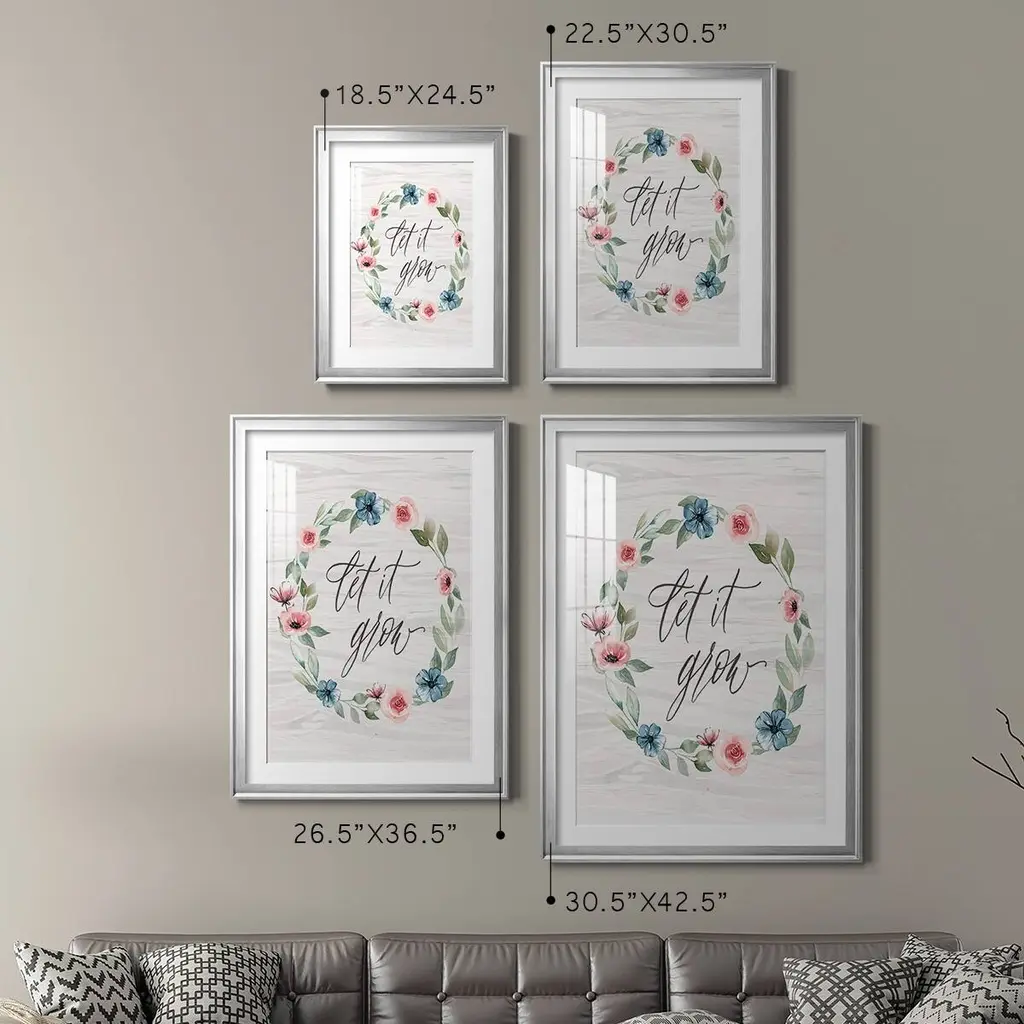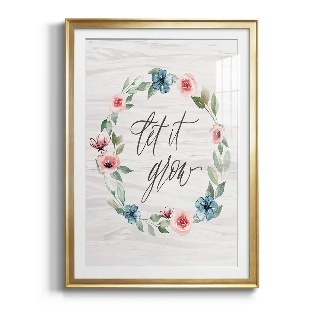 Let It Grow Premium Framed Print - Ready to Hang A Premium Framed Print created to last. Framed in distressed wood and available in an array of sizes and colors Featuring a beveled a solid wood stretcher bar, each piece comes ready to hand 4 SIZES AVAILABLE 30.5''X42.5'' - Overall Size 26.5'X36.5'' - Overall Size 22.5''x30.5'' - Overall Size 18.5''x24.5'' - Overall Size Each piece is made to order. Each piece comes with hanging hardware. Made in the USA Ready to Hang Giclee Paper Print Acrylic Glass Beveled Matt Board