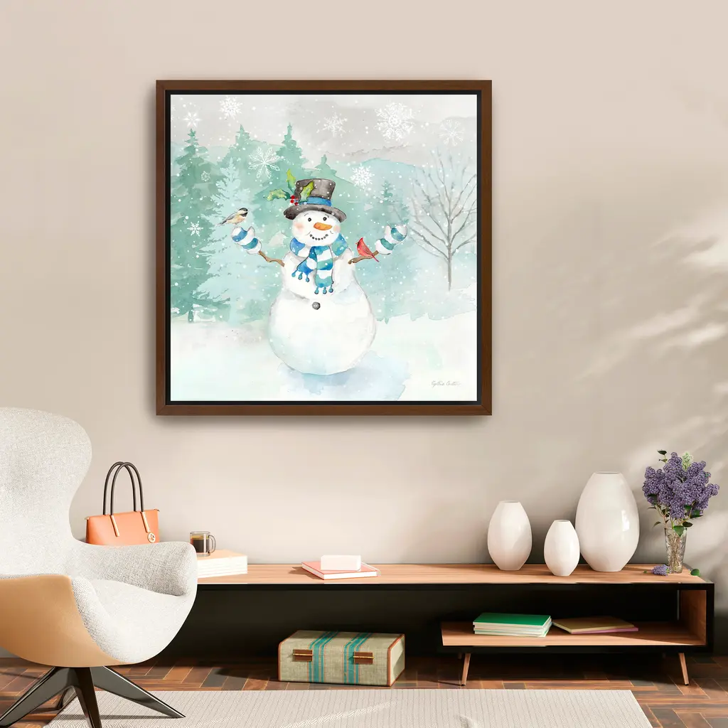 Let It Snow Blue Snowman I Canvas Giclee - Framed / Dark Walnut / 40x40