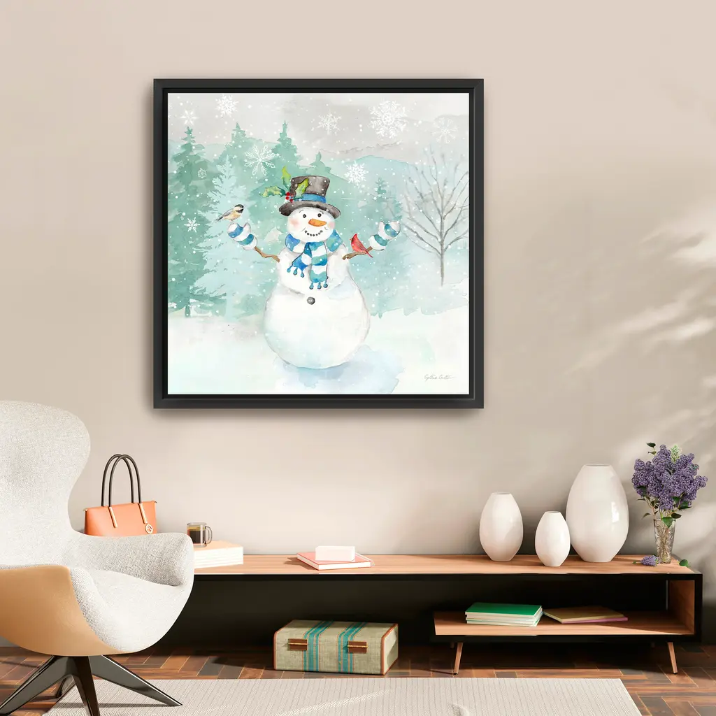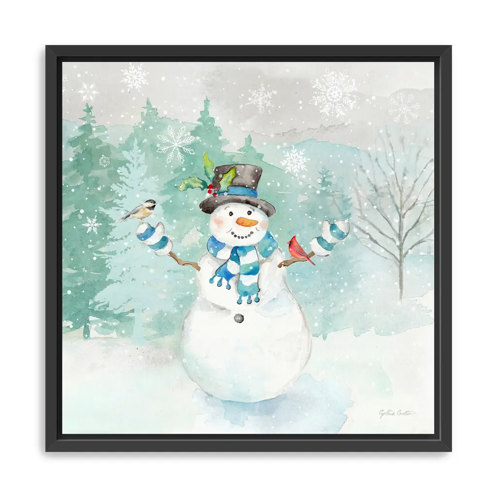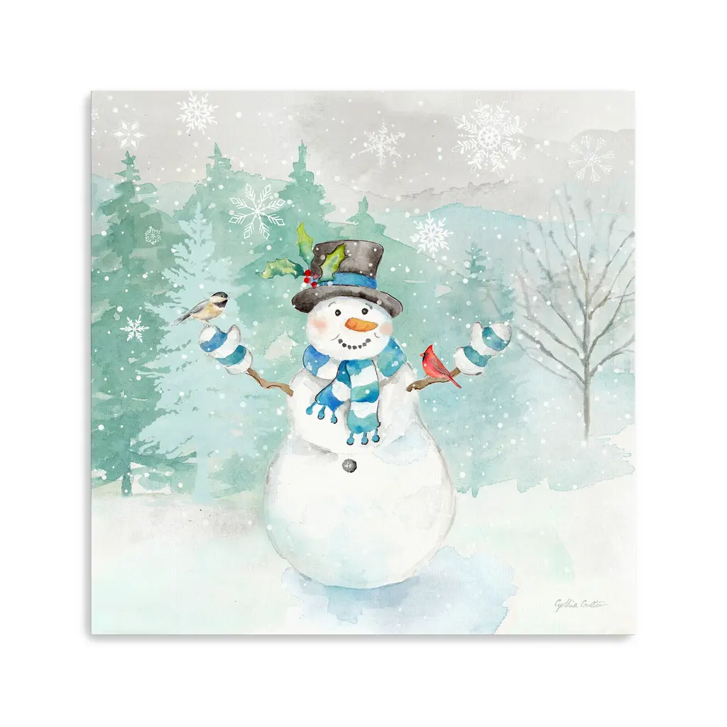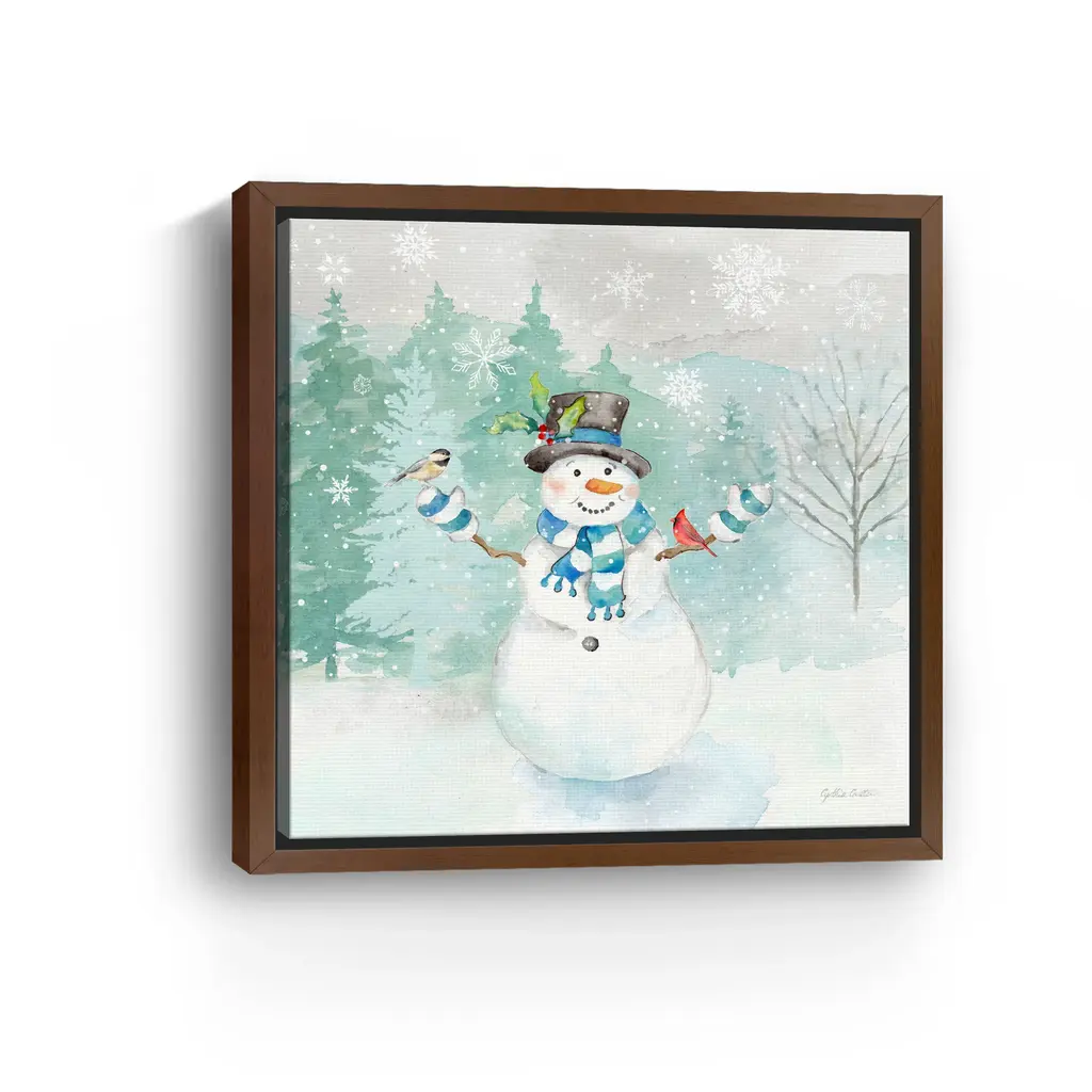 Bring a touch of snowy magic indoors with this festive snowman wall art that captures the spirit of Christmas. With its vibrant colors and whimsical details, it's sure to brighten any room all season long. Our Gallery Wrap Canvas Prints are proudly assembled with high quality materials in California, USA. Each piece is printed on a thick, archival grade canvas using Giclee technology. It is then hand-stretched by our experienced artisans over solid wood bars, which will not warp over time. The final product is a piece personally crafted for you to confidently display on your wall. Care and Assembly: Ensure that the location of your piece has little to no exposure to heat, sunlight, and moisture. Wipe clean, only if needed. Each piece includes hanging hardware to hang on your wall horizontally.