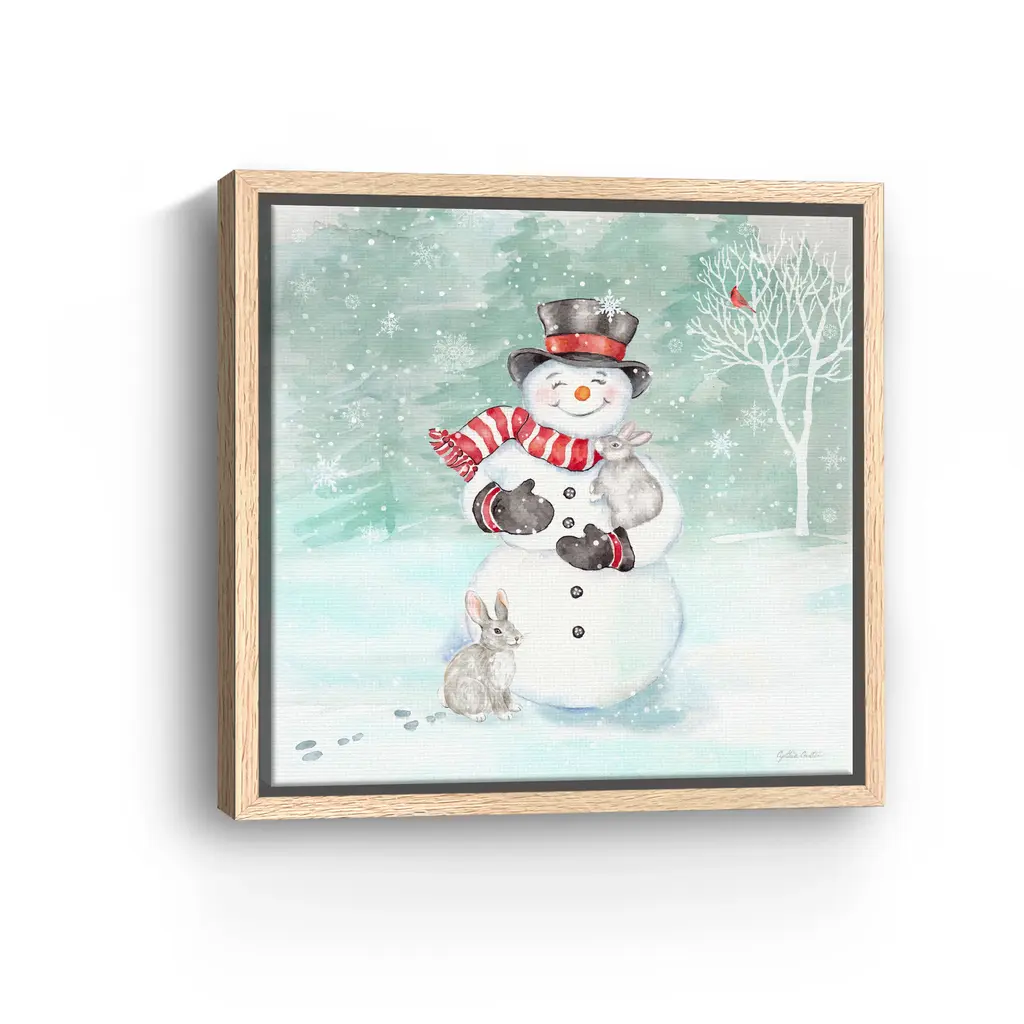 Celebrate the joy of winter with this cheerful snowman canvas print, perfect for adding holiday warmth to your home. Its playful design and frosty charm make it a delightful accent for seasonal decorating. Our Gallery Wrap Canvas Prints are proudly assembled with high quality materials in California, USA. Each piece is printed on a thick, archival grade canvas using Giclee technology. It is then hand-stretched by our experienced artisans over solid wood bars, which will not warp over time. The final product is a piece personally crafted for you to confidently display on your wall. Care and Assembly: Ensure that the location of your piece has little to no exposure to heat, sunlight, and moisture. Wipe clean, only if needed. Each piece includes hanging hardware to hang on your wall horizontally.
