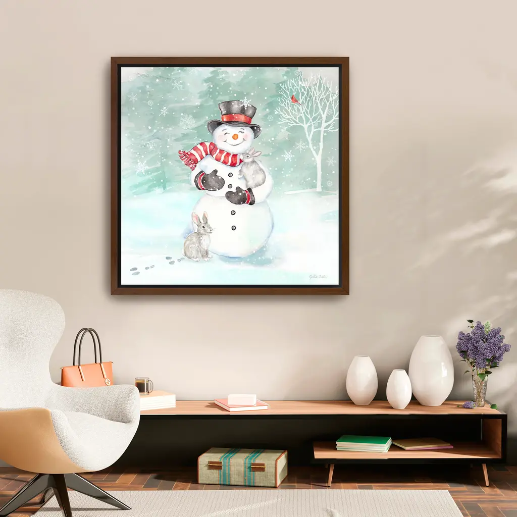 Celebrate the joy of winter with this cheerful snowman canvas print, perfect for adding holiday warmth to your home. Its playful design and frosty charm make it a delightful accent for seasonal decorating. Our Gallery Wrap Canvas Prints are proudly assembled with high quality materials in California, USA. Each piece is printed on a thick, archival grade canvas using Giclee technology. It is then hand-stretched by our experienced artisans over solid wood bars, which will not warp over time. The final product is a piece personally crafted for you to confidently display on your wall. Care and Assembly: Ensure that the location of your piece has little to no exposure to heat, sunlight, and moisture. Wipe clean, only if needed. Each piece includes hanging hardware to hang on your wall horizontally.