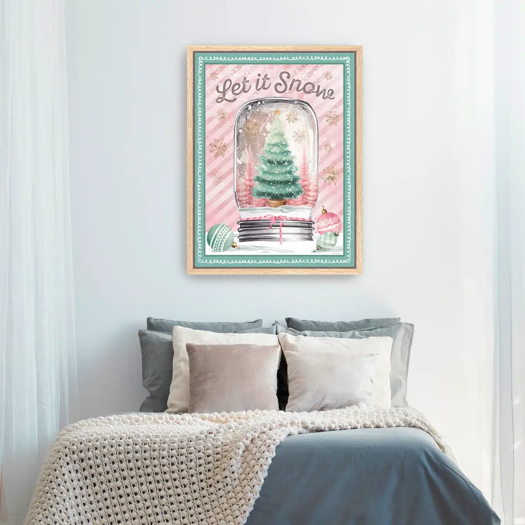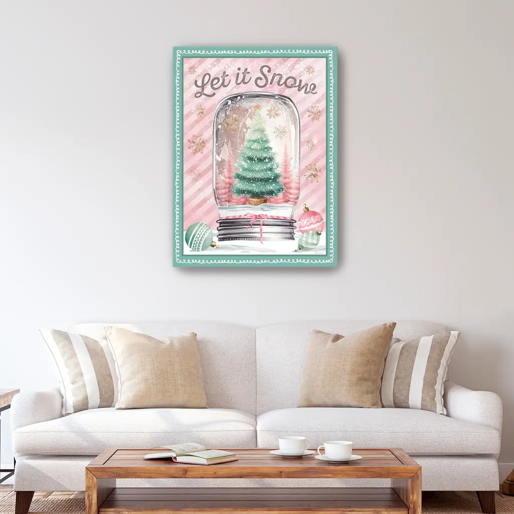 Celebrate the season with this whimsical canvas print featuring a snow globe filled with pastel trees, ornaments, and holiday cheer. Its soft pink background and playful accents create a joyful focal point for your Christmas decor. Our Gallery Wrap Canvas Prints are proudly assembled with high quality materials in California, USA. Each piece is printed on a thick, archival grade canvas using Giclee technology. It is then hand-stretched by our experienced artisans over solid wood bars, which will not warp over time. The final product is a piece personally crafted for you to confidently display on your wall. Care and Assembly: Ensure that the location of your piece has little to no exposure to heat, sunlight, and moisture. Wipe clean, only if needed. Each piece includes hanging hardware to hang on your wall vertically.