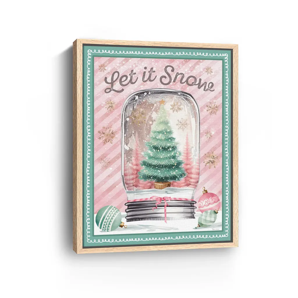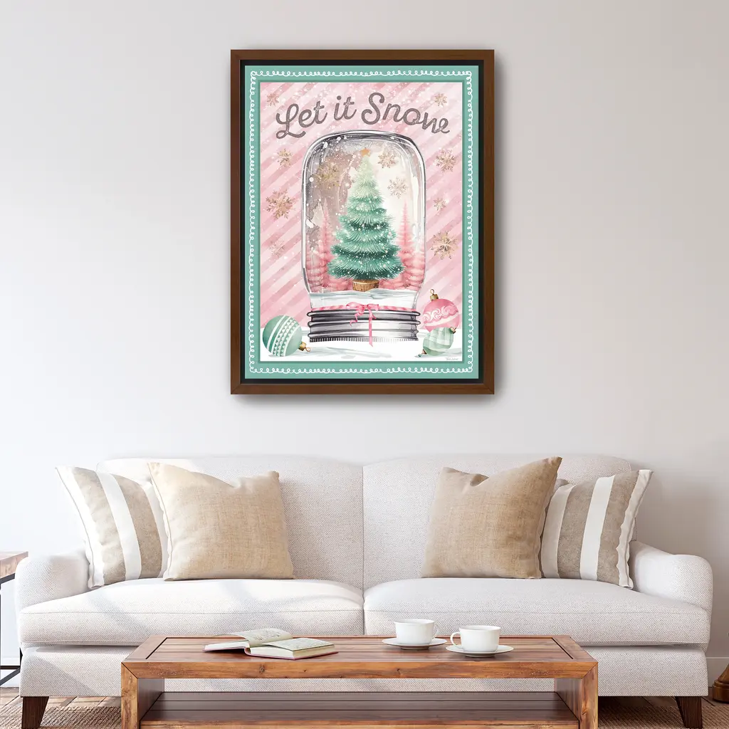 Celebrate the season with this whimsical canvas print featuring a snow globe filled with pastel trees, ornaments, and holiday cheer. Its soft pink background and playful accents create a joyful focal point for your Christmas decor. Our Gallery Wrap Canvas Prints are proudly assembled with high quality materials in California, USA. Each piece is printed on a thick, archival grade canvas using Giclee technology. It is then hand-stretched by our experienced artisans over solid wood bars, which will not warp over time. The final product is a piece personally crafted for you to confidently display on your wall. Care and Assembly: Ensure that the location of your piece has little to no exposure to heat, sunlight, and moisture. Wipe clean, only if needed. Each piece includes hanging hardware to hang on your wall vertically.