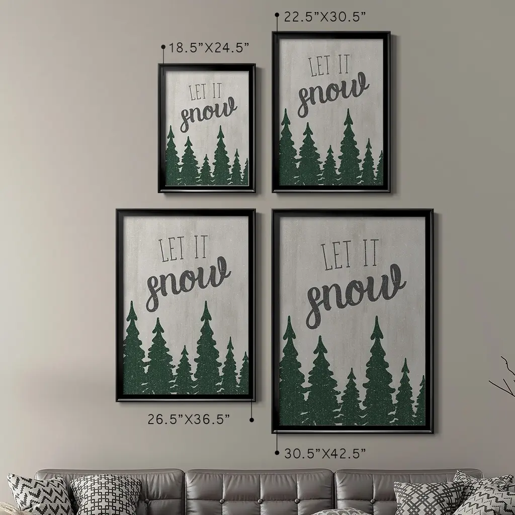 Let It Snow Forest Premium Framed Print - Ready to Hang A Premium Framed Print created to last. Framed in distressed wood and available in an array of sizes and colors Featuring a beveled a solid wood stretcher bar, each piece comes ready to hand 4 SIZES AVAILABLE 30.5''X42.5'' - Overall Size 26.5'X36.5'' - Overall Size 22.5''x30.5'' - Overall Size 18.5''x24.5'' - Overall Size Each piece is made to order. Each piece comes with hanging hardware. Made in the USA Ready to Hang