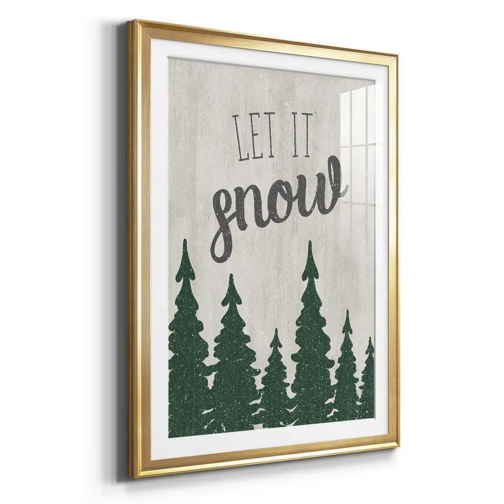 Let It Snow Forest Premium Framed Print - Ready to Hang A Premium Framed Print created to last. Framed in distressed wood and available in an array of sizes and colors Featuring a beveled a solid wood stretcher bar, each piece comes ready to hand 4 SIZES AVAILABLE 30.5''X42.5'' - Overall Size 26.5'X36.5'' - Overall Size 22.5''x30.5'' - Overall Size 18.5''x24.5'' - Overall Size Each piece is made to order. Each piece comes with hanging hardware. Made in the USA Ready to Hang Giclee Paper Print Acrylic Glass Beveled Matt Board