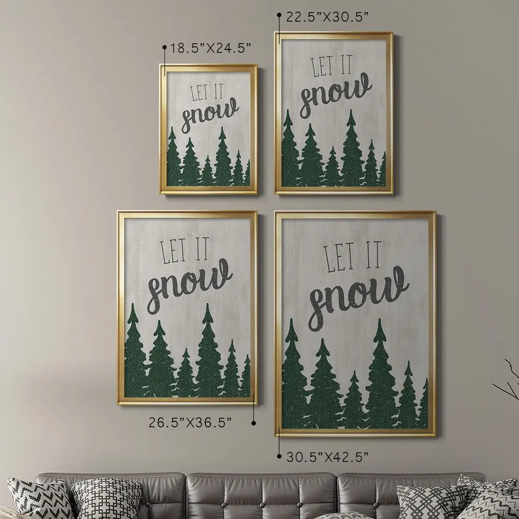 Let It Snow Forest Premium Framed Print - Ready to Hang A Premium Framed Print created to last. Framed in distressed wood and available in an array of sizes and colors Featuring a beveled a solid wood stretcher bar, each piece comes ready to hand 4 SIZES AVAILABLE 30.5''X42.5'' - Overall Size 26.5'X36.5'' - Overall Size 22.5''x30.5'' - Overall Size 18.5''x24.5'' - Overall Size Each piece is made to order. Each piece comes with hanging hardware. Made in the USA Ready to Hang