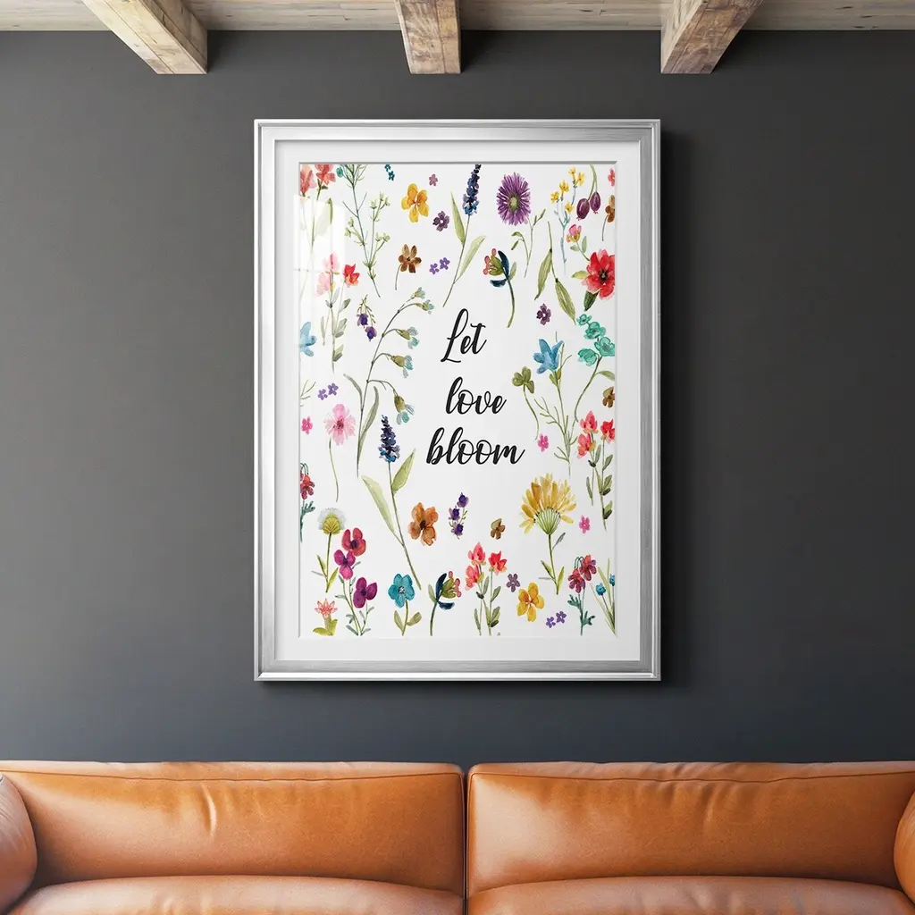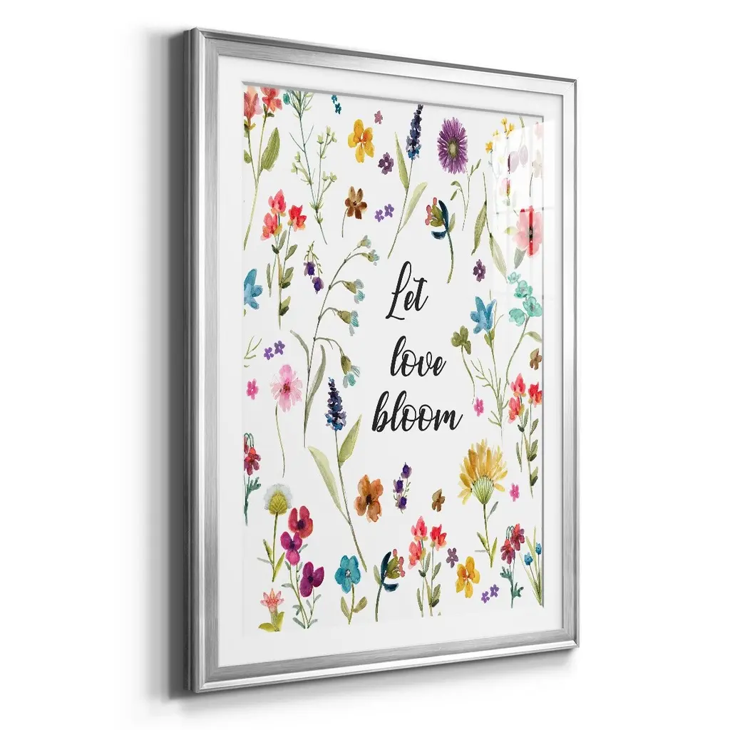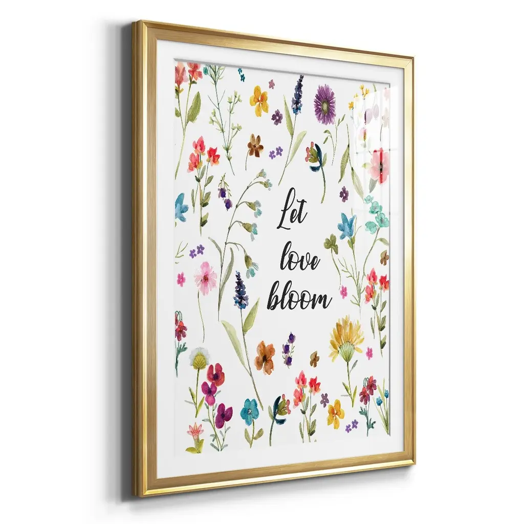 Let Love Bloom Premium Framed Print - Ready to Hang A Premium Framed Print created to last. Framed in distressed wood and available in an array of sizes and colors Featuring a beveled a solid wood stretcher bar, each piece comes ready to hand 4 SIZES AVAILABLE 30.5''X42.5'' - Overall Size 26.5'X36.5'' - Overall Size 22.5''x30.5'' - Overall Size 18.5''x24.5'' - Overall Size Each piece is made to order. Each piece comes with hanging hardware. Made in the USA Ready to Hang Giclee Paper Print Acrylic Glass Beveled Matt Board