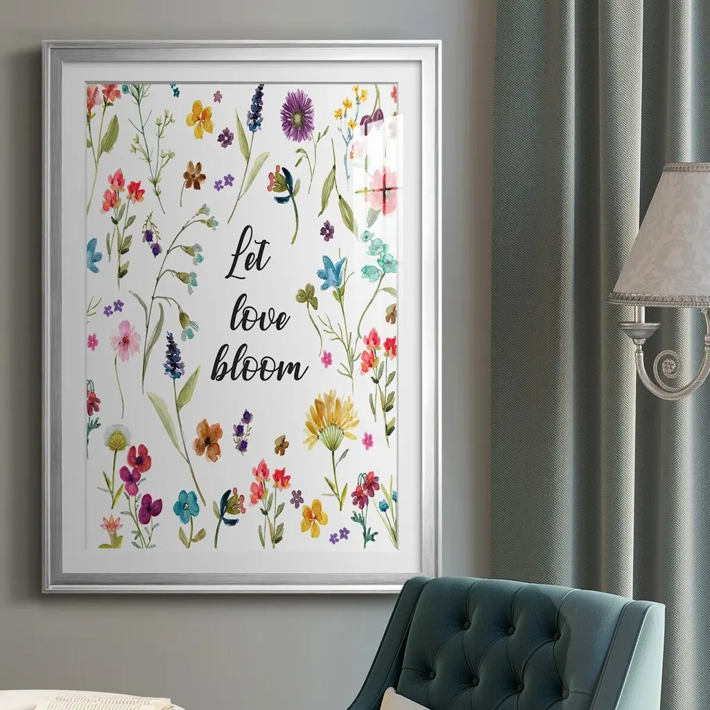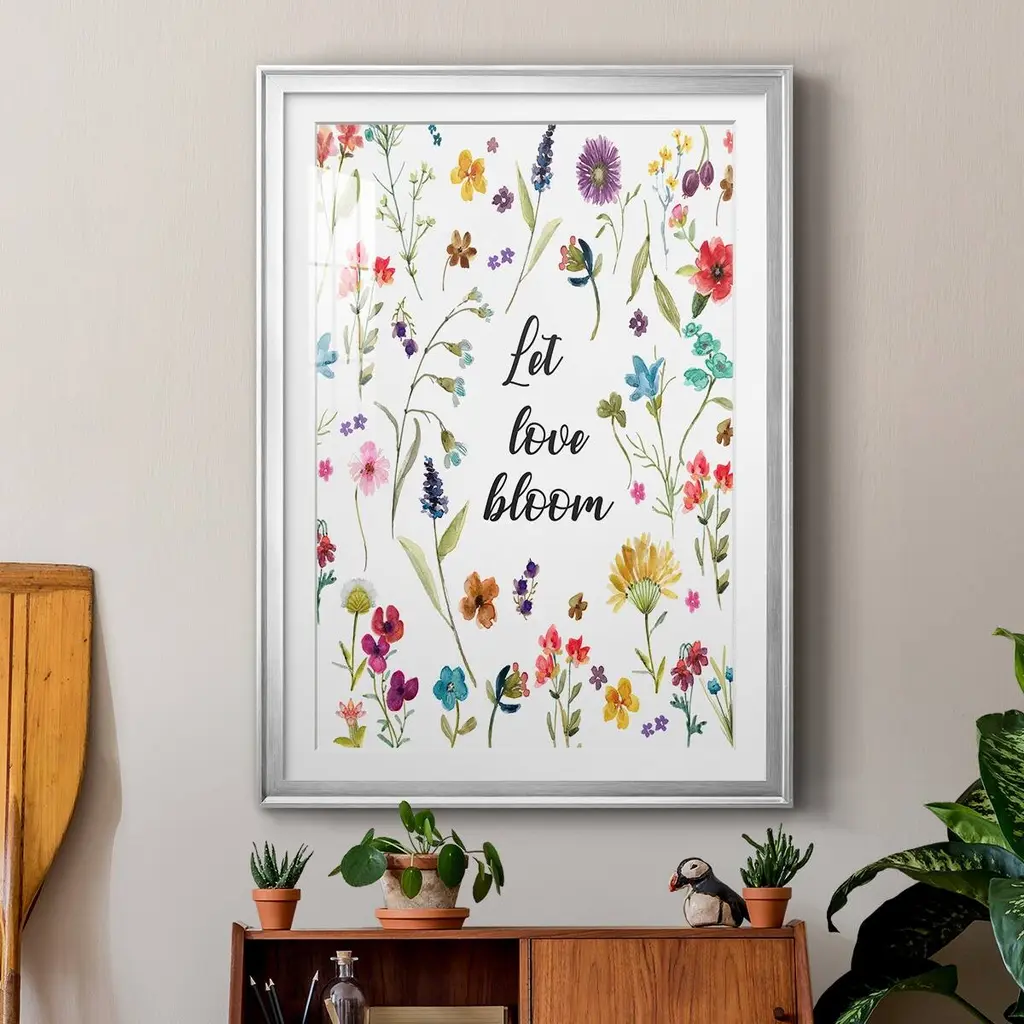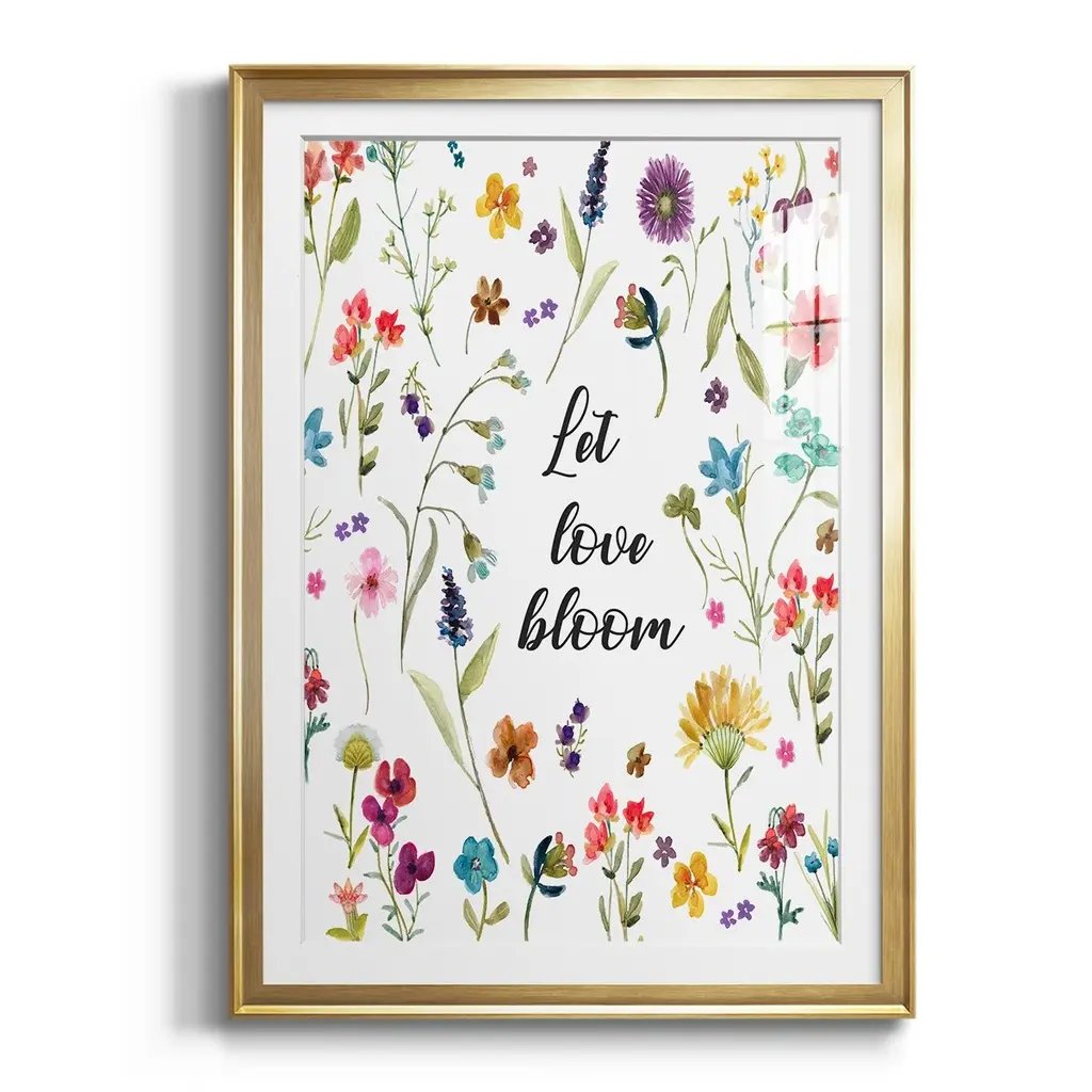 Let Love Bloom Premium Framed Print - Ready to Hang A Premium Framed Print created to last. Framed in distressed wood and available in an array of sizes and colors Featuring a beveled a solid wood stretcher bar, each piece comes ready to hand 4 SIZES AVAILABLE 30.5''X42.5'' - Overall Size 26.5'X36.5'' - Overall Size 22.5''x30.5'' - Overall Size 18.5''x24.5'' - Overall Size Each piece is made to order. Each piece comes with hanging hardware. Made in the USA Ready to Hang Giclee Paper Print Acrylic Glass Beveled Matt Board