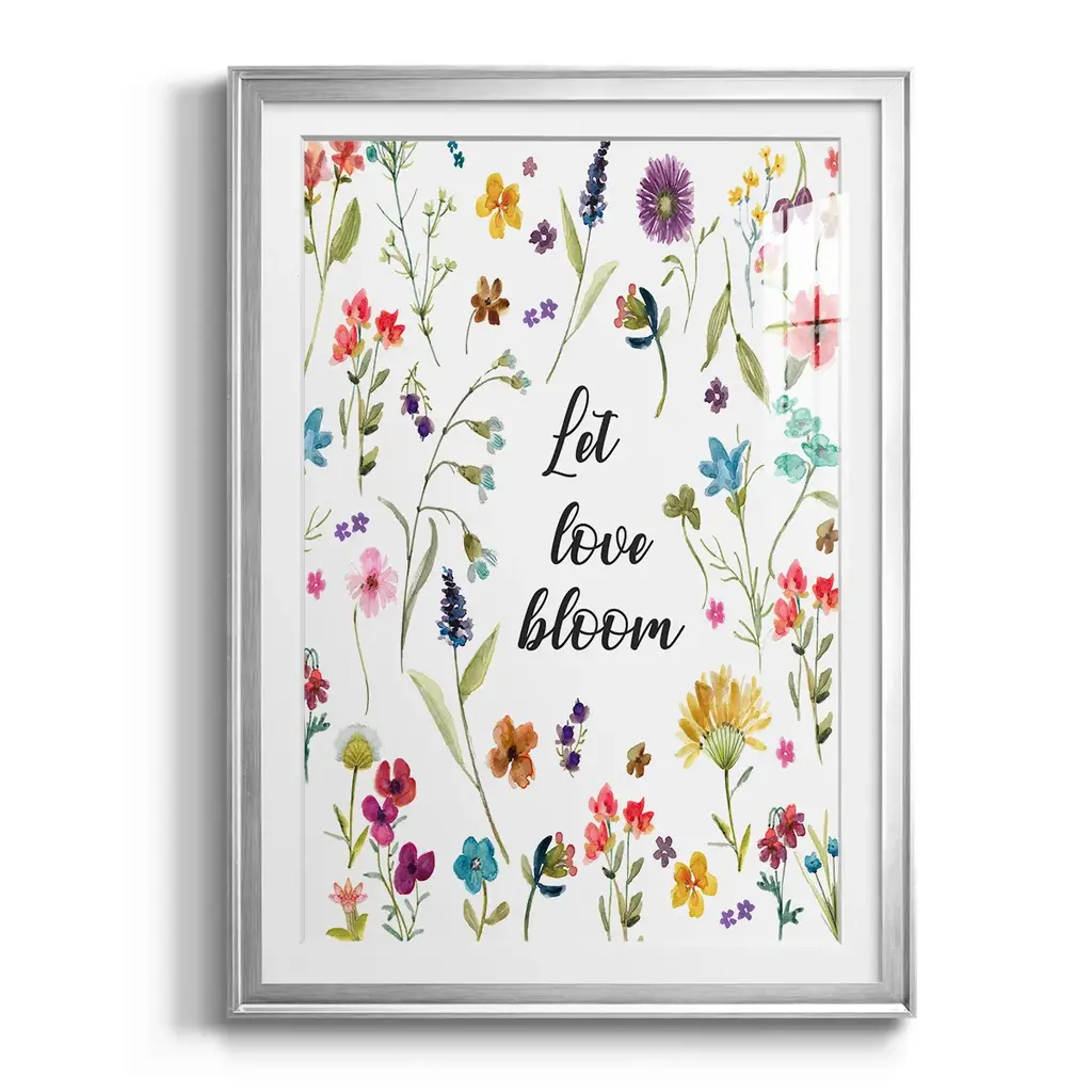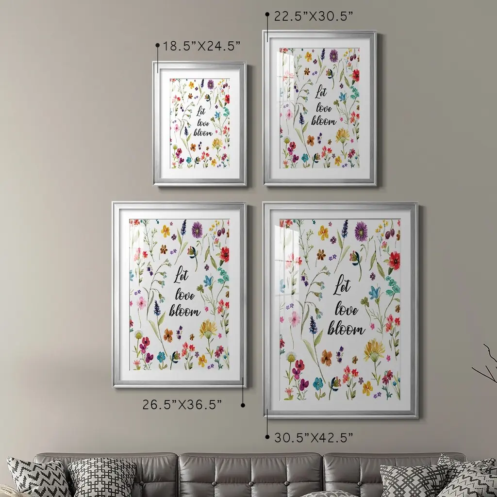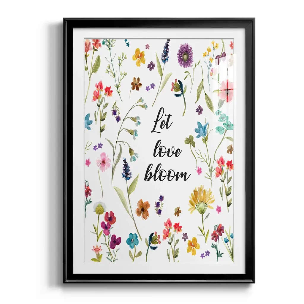 Let Love Bloom Premium Framed Print - Ready to Hang A Premium Framed Print created to last. Framed in distressed wood and available in an array of sizes and colors Featuring a beveled a solid wood stretcher bar, each piece comes ready to hand 4 SIZES AVAILABLE 30.5''X42.5'' - Overall Size 26.5'X36.5'' - Overall Size 22.5''x30.5'' - Overall Size 18.5''x24.5'' - Overall Size Each piece is made to order. Each piece comes with hanging hardware. Made in the USA Ready to Hang Giclee Paper Print Acrylic Glass Beveled Matt Board