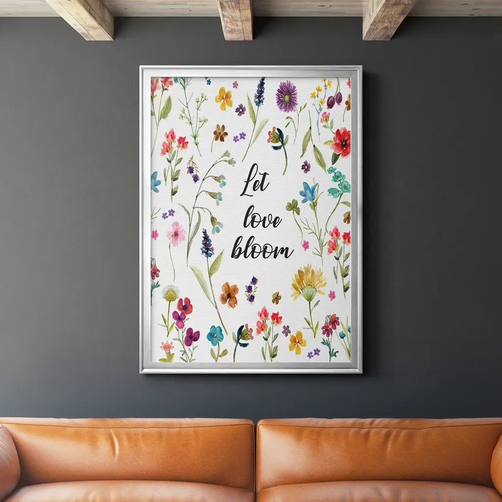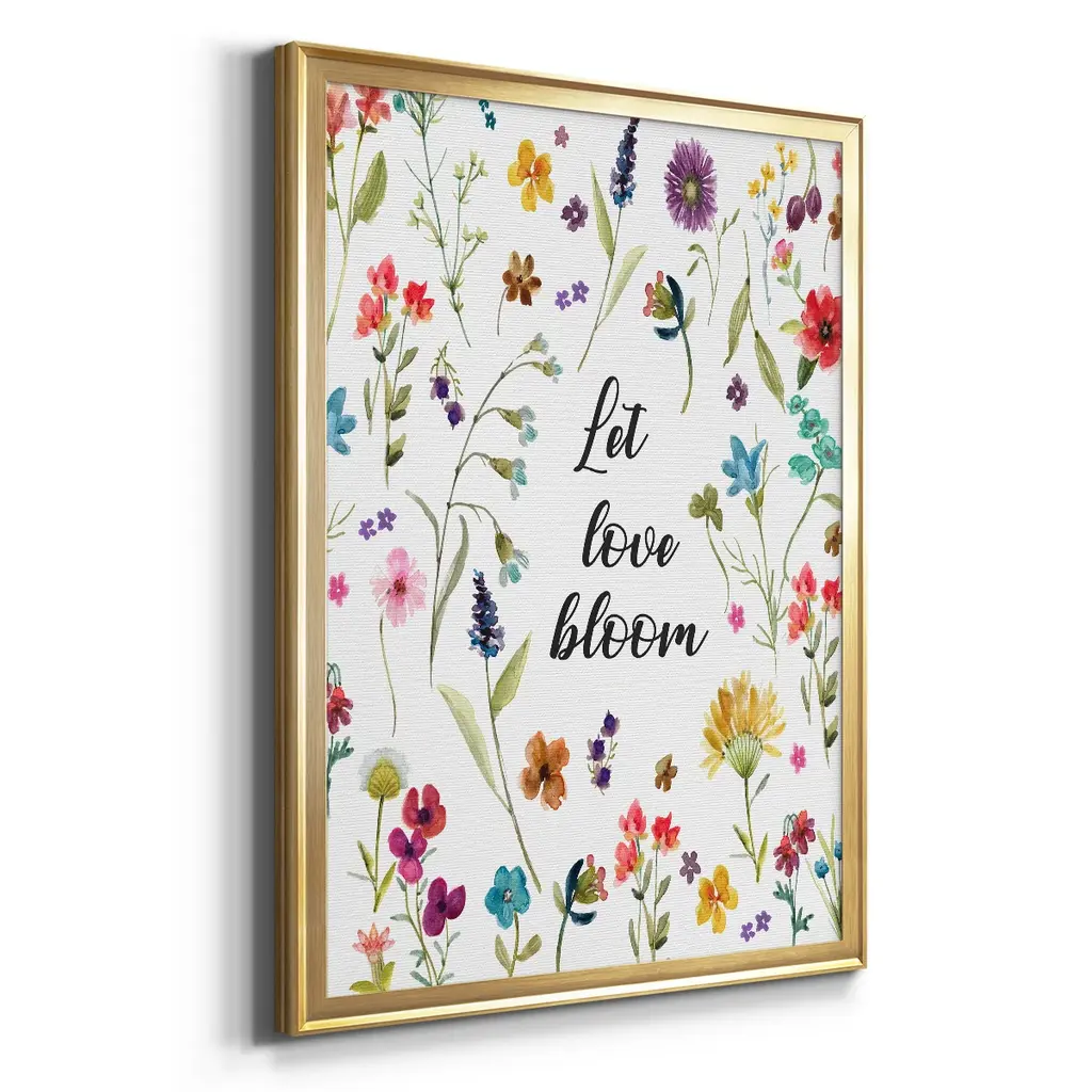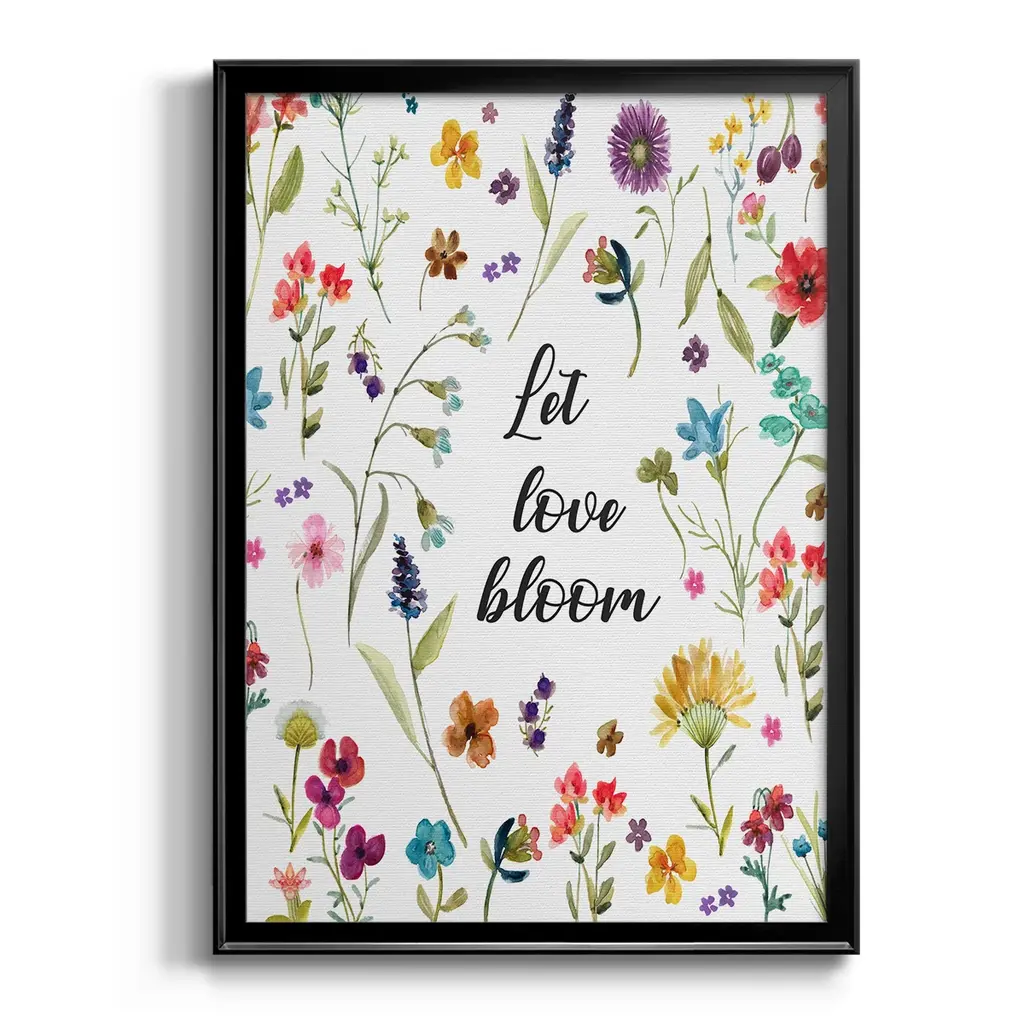 Let Love Bloom Premium Framed Print - Ready to Hang A Premium Framed Print created to last. Framed in distressed wood and available in an array of sizes and colors Featuring a beveled a solid wood stretcher bar, each piece comes ready to hand 4 SIZES AVAILABLE 30.5''X42.5'' - Overall Size 26.5'X36.5'' - Overall Size 22.5''x30.5'' - Overall Size 18.5''x24.5'' - Overall Size Each piece is made to order. Each piece comes with hanging hardware. Made in the USA Ready to Hang