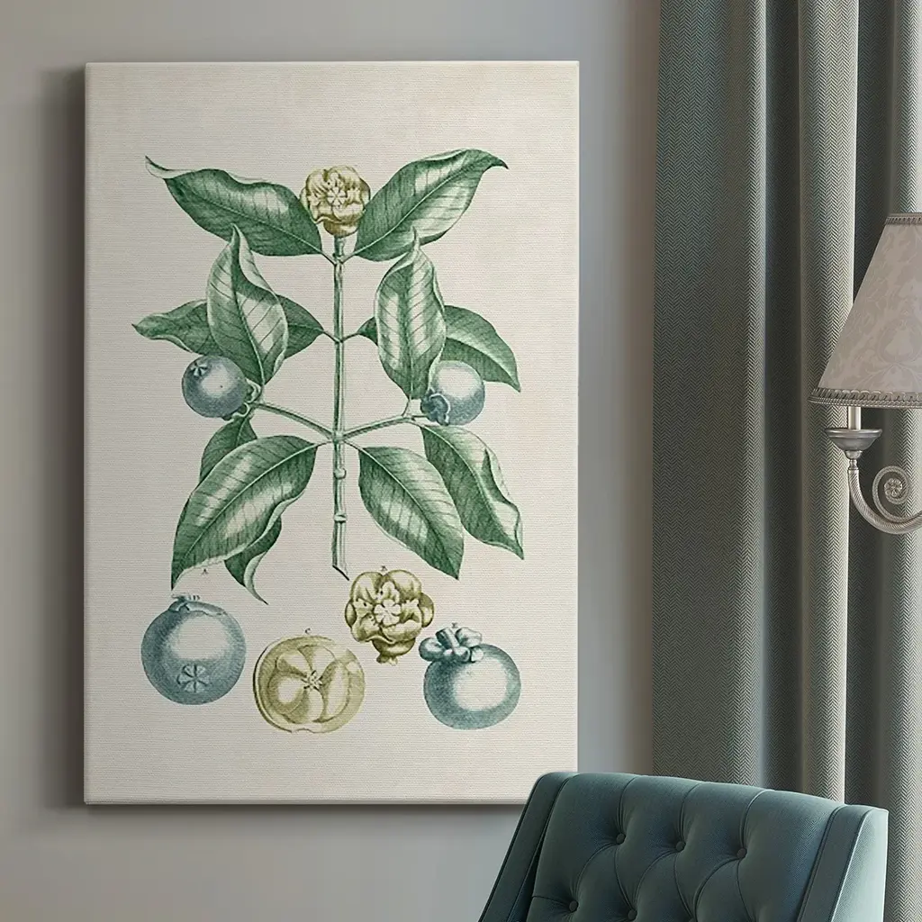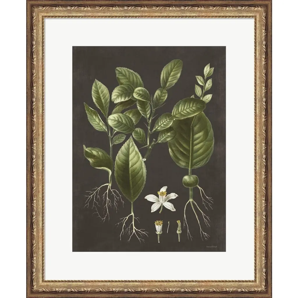 Citrus Botanical by Lettered & Lined is a high quality piece of framed artwork. The finished size of this piece is 18.75" X 22.75". It has a Slim Champagne Silver and Gray with Ornate Floral Detail frame, is single matted and finished with high quality Acrylic Plexiglass. 100% Satisfaction Guaranteed.