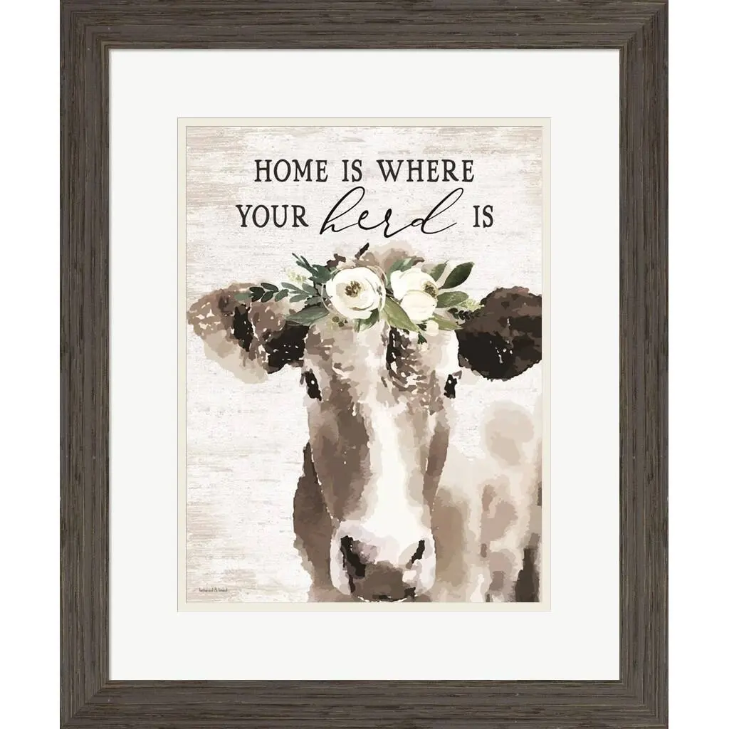Lettered & Lined 'Home Is Where Your Herd Is' Framed Art - 20 X 24