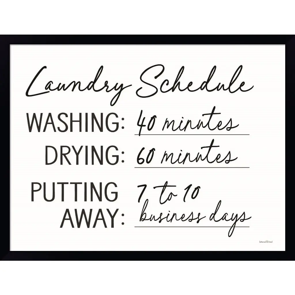 Laundry Schedule by Lettered & Lined is a high quality piece of framed artwork. The finished size of this piece is 22.5" X 17.5". It has a Petite Black with Flat Front frame and is finished with high quality Acrylic Plexiglass. 100% Satisfaction Guaranteed.