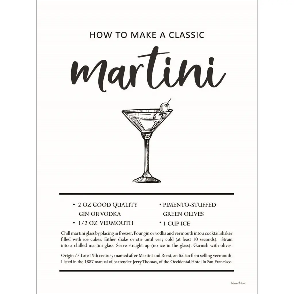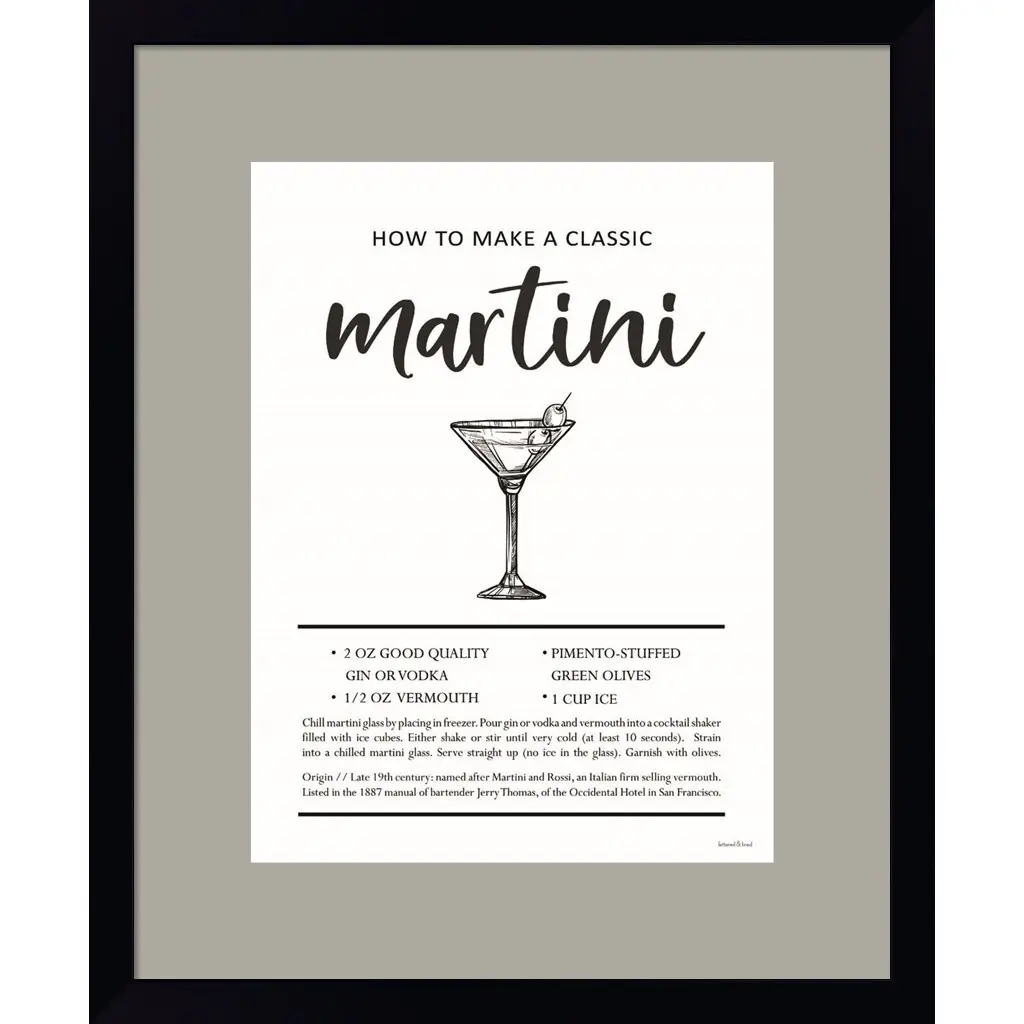 Martini by Lettered & Lined is a high quality piece of framed artwork. The finished size of this piece is 14" x 17". It has a Petite Black with Flat Front frame, Gray mat and is finished with high quality Acrylic Plexiglass. 100% Satisfaction Guaranteed.