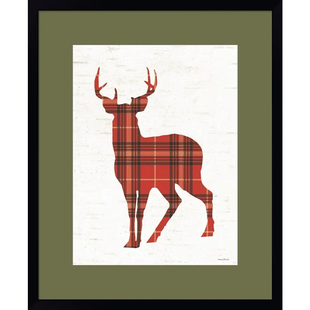 Lettered & Lined 'Plaid Deer' Framed Art - 18 X 22