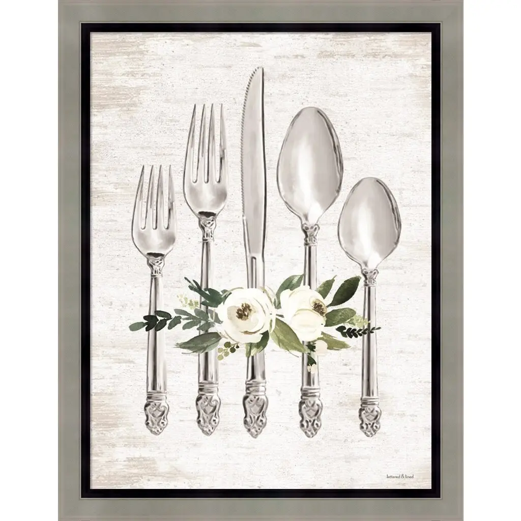 Ready to Dine by Lettered & Lined is a high quality piece of framed artwork. The finished size of this piece is 17.5" X 22.5". It has a Contemporary Silver Wood w/Black Inner Accent frame and is finished with high quality Acrylic Plexiglass. 100% Satisfaction Guaranteed.