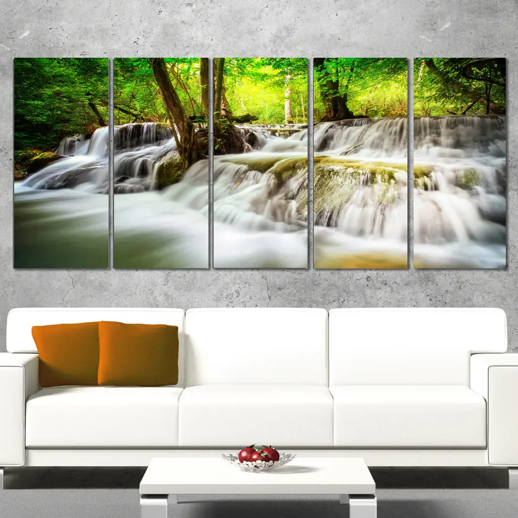 "Level Five Of Erawan Waterfall" Landscape Canvas Print, 5 Panels, 60"x28"