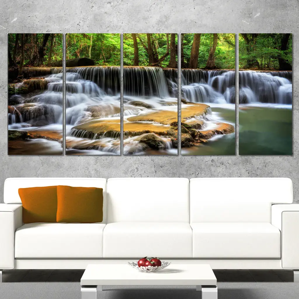 "Level Six Of Huai Mae Kamin Waterfall" Canvas Print, 5 Panels, 60"x28"