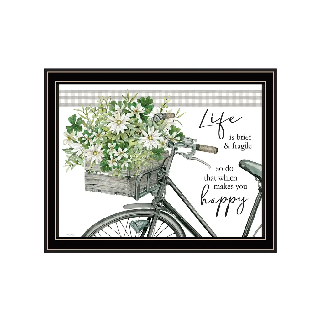 Bring some sizzle to your space with this eye-catching life is a journey enjoy black framed print wall art. This transportation inspired wall art features a bicycle icon and will bring a refreshing look and perspective to your walls. This print is a visual artistic expression that allows you to decorate your space in style. Reproduced for you on paper, this hanging decorative accent will be a trendy and fashionable way to dress your walls. Hang on your wall to add some up to date fashion and decoration. Utilize this opportunity to create a focal point in the room with this fabulous wall decor option. 19" H x 15" W x 1" D