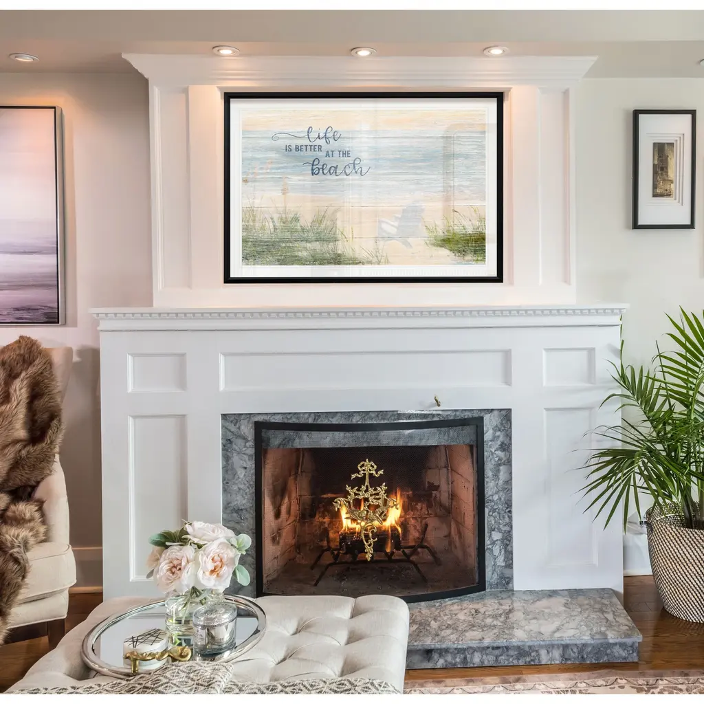 Life is Better at the Beach-Framed Giclee Print A premium framed giclee print Printed using the last archival inks. Each print is carefully printed and framed by hand. Each piece features a 2'' Beveled matt board, acrylic glass and comes ready to hand. 4 SIZES AVILABLE 18''X24''- Overall Size 22''x30''- Overall Size 26''x26''' - Overall Size 30''x42''' - Overall Size ** Overall size may vary slightly from piece to piece Each piece is made to order. Built to Last Each piece comes ready to hang Archival Ink 2'' Matt Board Assembled by hand in the America