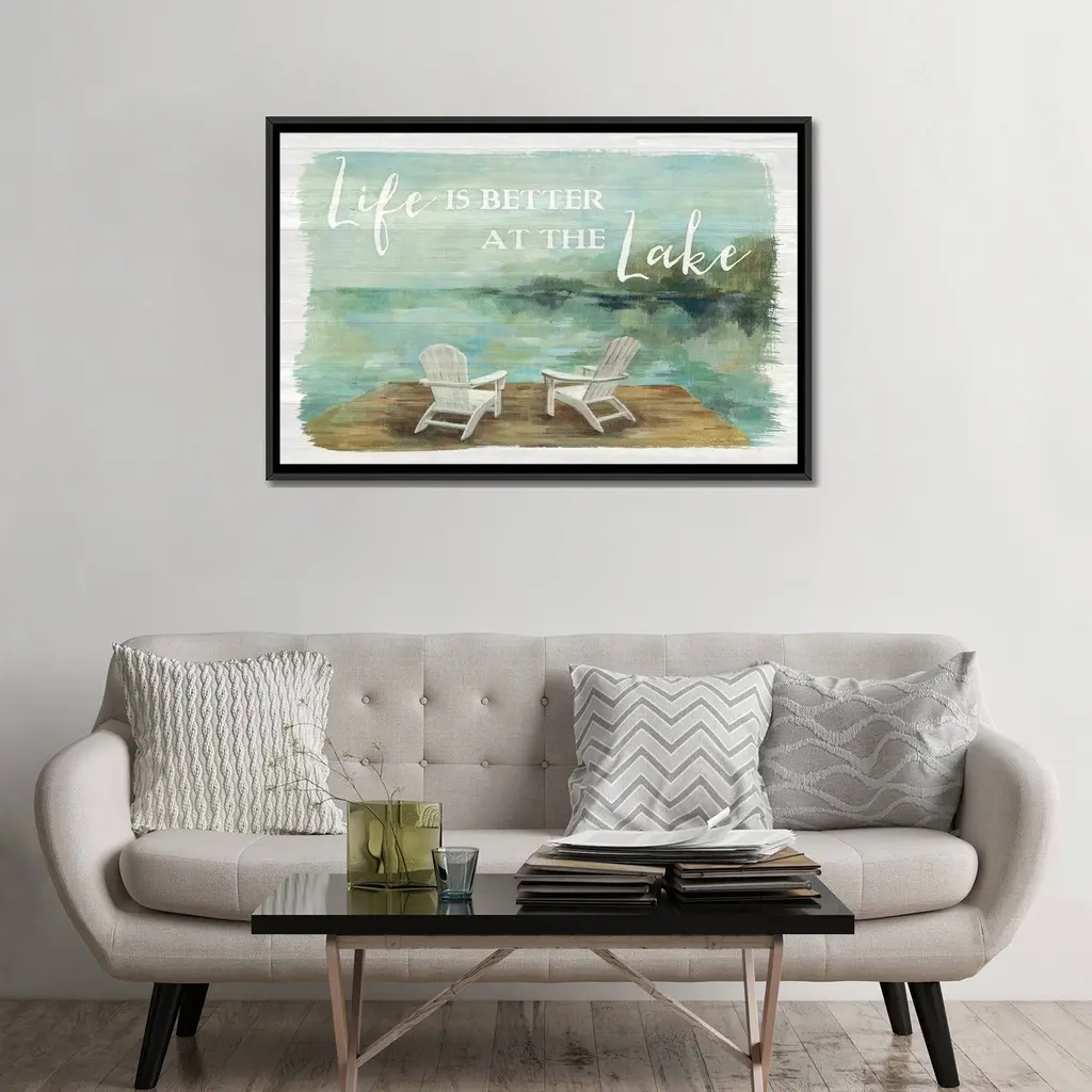 Life Is Better At The Lake 2 Black Framed Print Wall Art - Black