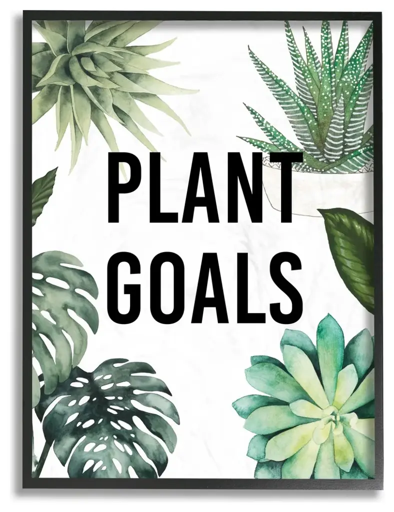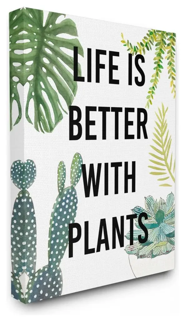 Life Is Better With Plants Illustrations Oversized Framed Giclee Art, 16"x20"