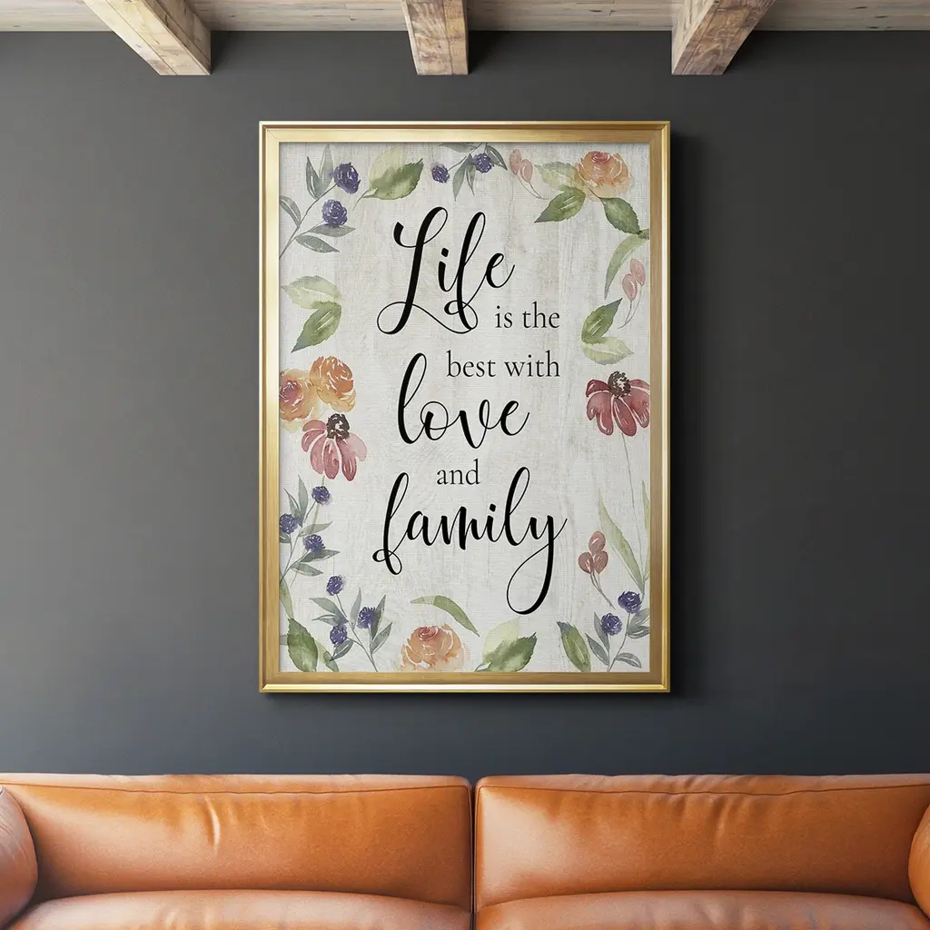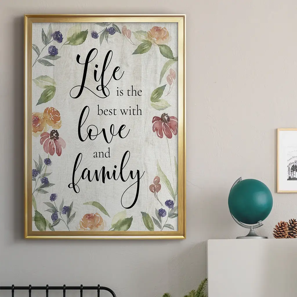 Life is the Best Premium Framed Print - Ready to Hang A Premium Framed Print created to last. Framed in distressed wood and available in an array of sizes and colors Featuring a beveled a solid wood stretcher bar, each piece comes ready to hand 4 SIZES AVAILABLE 30.5''X42.5'' - Overall Size 26.5'X36.5'' - Overall Size 22.5''x30.5'' - Overall Size 18.5''x24.5'' - Overall Size Each piece is made to order. Each piece comes with hanging hardware. Made in the USA Ready to Hang