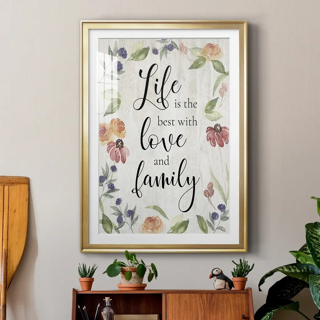 Life is the Best Premium Framed Print - Ready to Hang A Premium Framed Print created to last. Framed in distressed wood and available in an array of sizes and colors Featuring a beveled a solid wood stretcher bar, each piece comes ready to hand 4 SIZES AVAILABLE 30.5''X42.5'' - Overall Size 26.5'X36.5'' - Overall Size 22.5''x30.5'' - Overall Size 18.5''x24.5'' - Overall Size Each piece is made to order. Each piece comes with hanging hardware. Made in the USA Ready to Hang Giclee Paper Print Acrylic Glass Beveled Matt Board